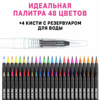 Акварельные маркеры DENKSY 48 цветов в черном корпусе корпусе и 4 кисти с резервуаром в пенале: сравнение цен, характеристики, фото, актуальное наличие и цены.