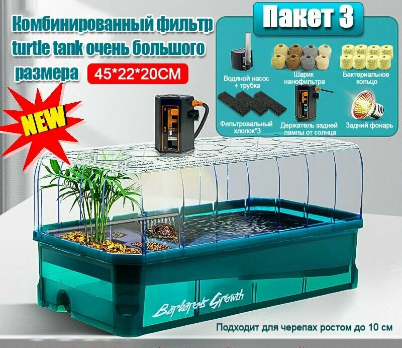 Аквариум для черепах, 45*22*20 см, с водяным насосом, подсветкой, небольшим ящиком для черепах: сравнение цен, характеристики, фото, актуальное наличие и цены.