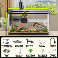 Аквариум для черепах и рыб с встроенным фильтром, освещением и островом, черный,55X30X29.4CM: сравнение цен, характеристики, фото, актуальное наличие и цены.