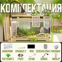Аквариум для рыб с подсветкой, фильтром и живой зоной, бежевый ,55X30X29.4CM: сравнение цен, характеристики, фото, актуальное наличие и цены.