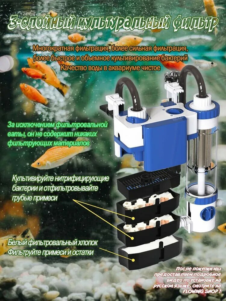 Аквариумный фильтр системы очистки "три в одном" позволяет улучшить качество воды, удалить грязь, отделить фекалии рыб, насытить кислородом кровеносную систему и удалить масляную пленку из аквариума.