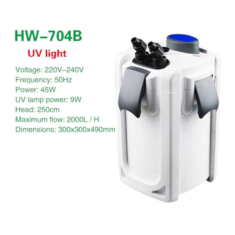 Фильтр внешний канистровый для аквариума HW-704B "SUNSUN" с UV стерилизатором 45W, лампа 9W (2000л/ч, акв. до 700л) 4 корзины, ось керамика, низкошумный, наполн. синтепон 220V,50Hz, h=2,5м, 300*300*490мм (шт.)