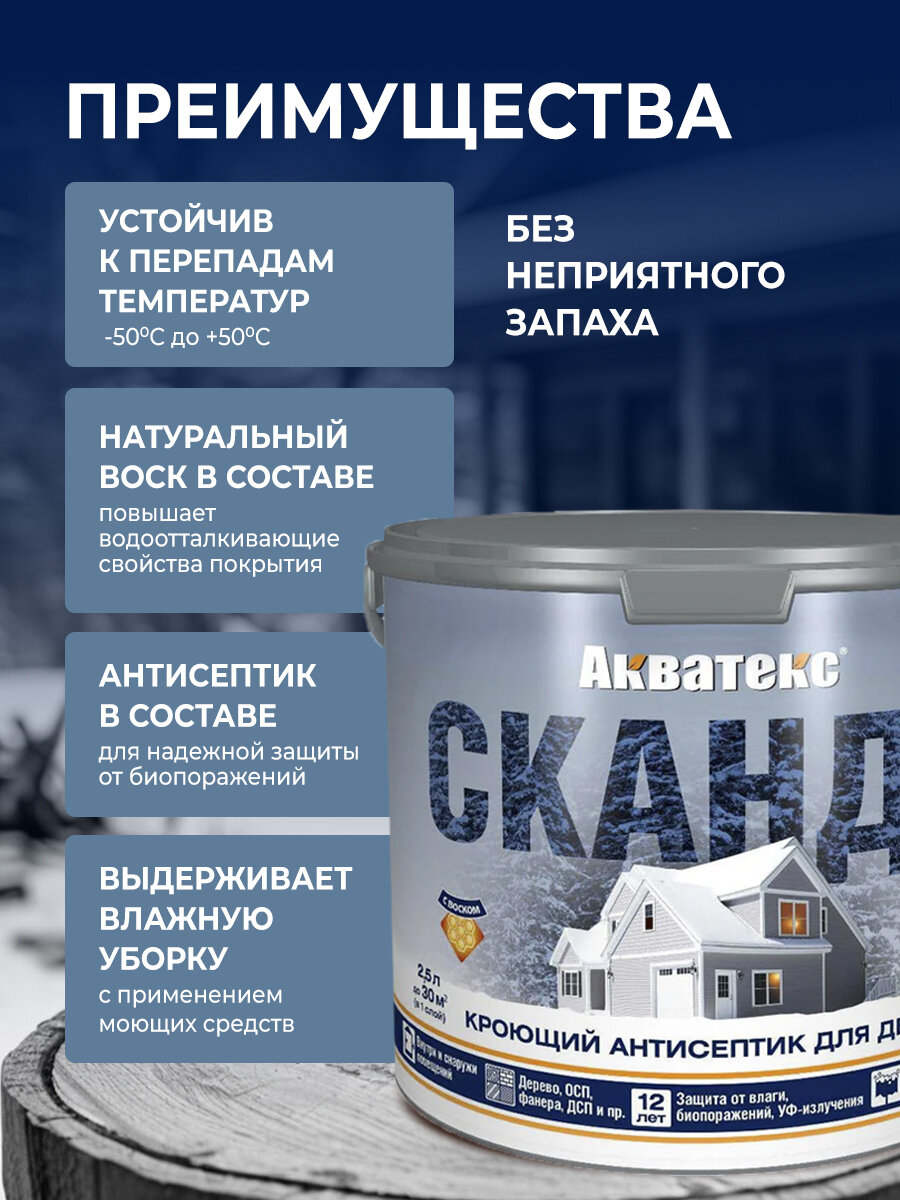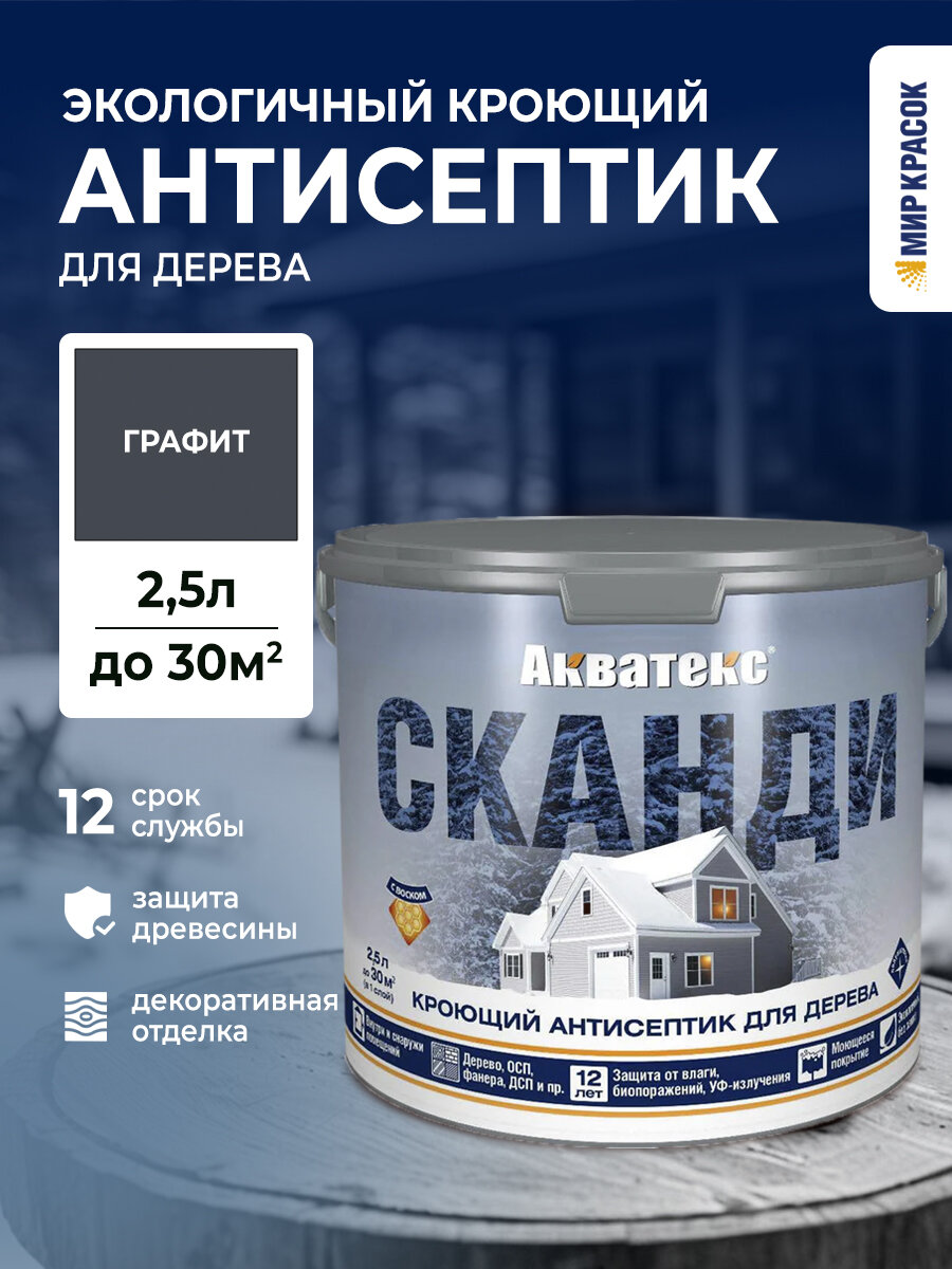 Акватекс сканди антисептик для древесины, кроющий, акриловый, п-мат, графит (2,5л): сравнение цен, характеристики, фото, актуальное наличие и цены.
