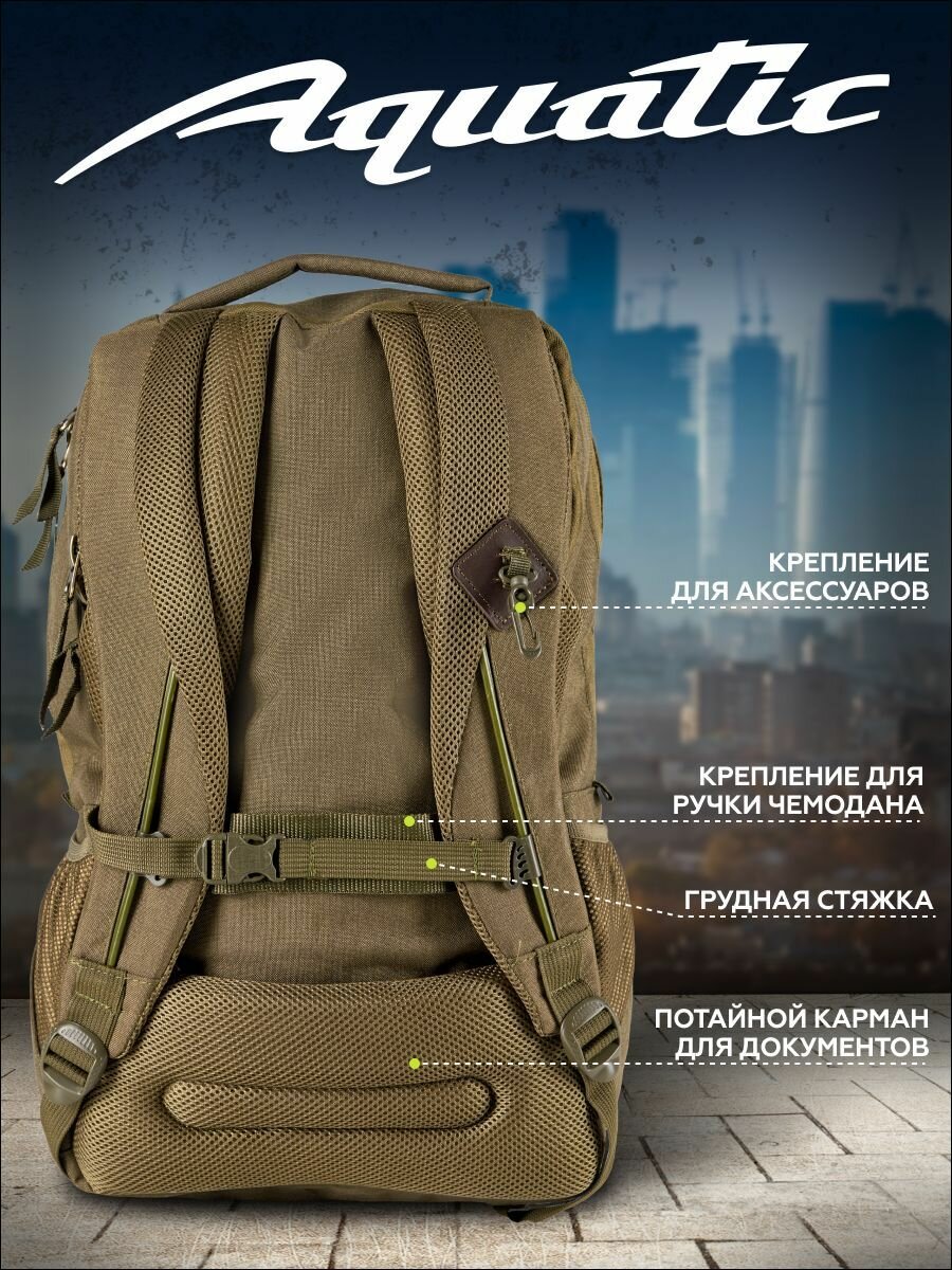 Купить Акватик Рюкзак мужской, городской для путешествий, потайной карман. 50х34х20см (Хаки) с доставкой по всей России.