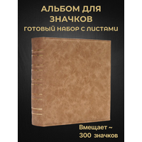 Альбом для коллекционирования значков из экокожи с 5 листами (бежевый)