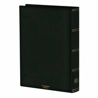 В футляре. Альбом (кляссер) из искусственной кожи для хранения марок на 32 страницы черного цвета, на каждой странице 9 прозрачных клеммташей. Каждую страницу разделяют двойные промежуточные пергаминовый листы.