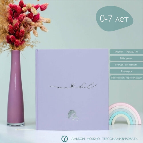 Купить Альбом для новорожденного Amabook с рождения и до 7 лет, 160 стр/ Первый альбом малыша Amabook Лаванда с доставкой по всей России.
