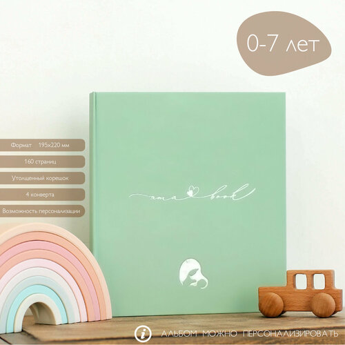 Купить Альбом для новорожденного Amabook с рождения и до 7 лет, 160 стр/ Первый альбом малыша Amabook Мята с доставкой по всей России.
