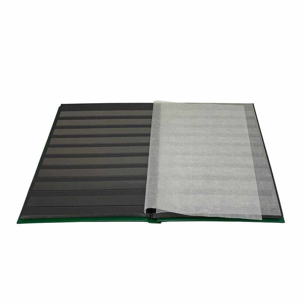 Альбом выполнен в зеленом цвете, что придает ему стильный и современный вид. Ватированная обложка из искусственной кожи обеспечивает долговечность и защиту от повреждений.