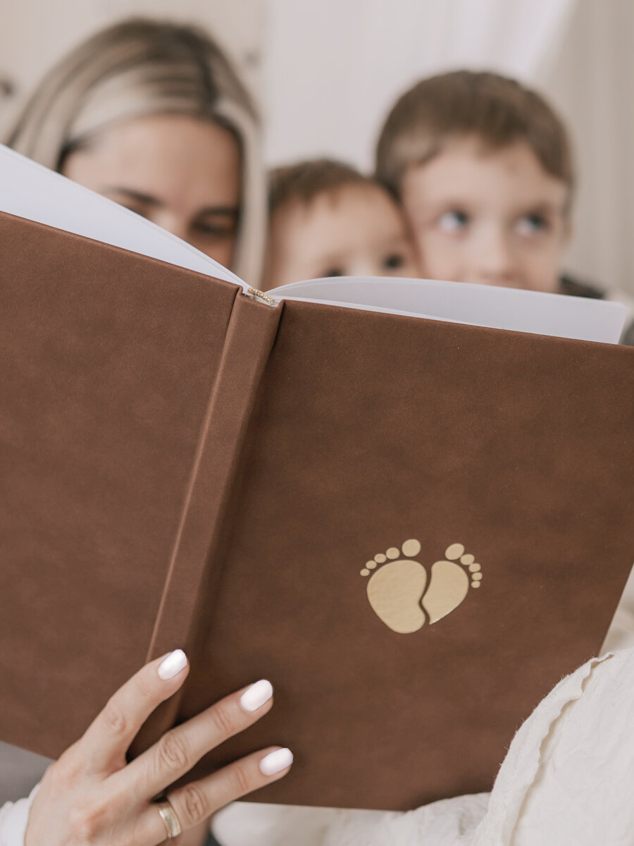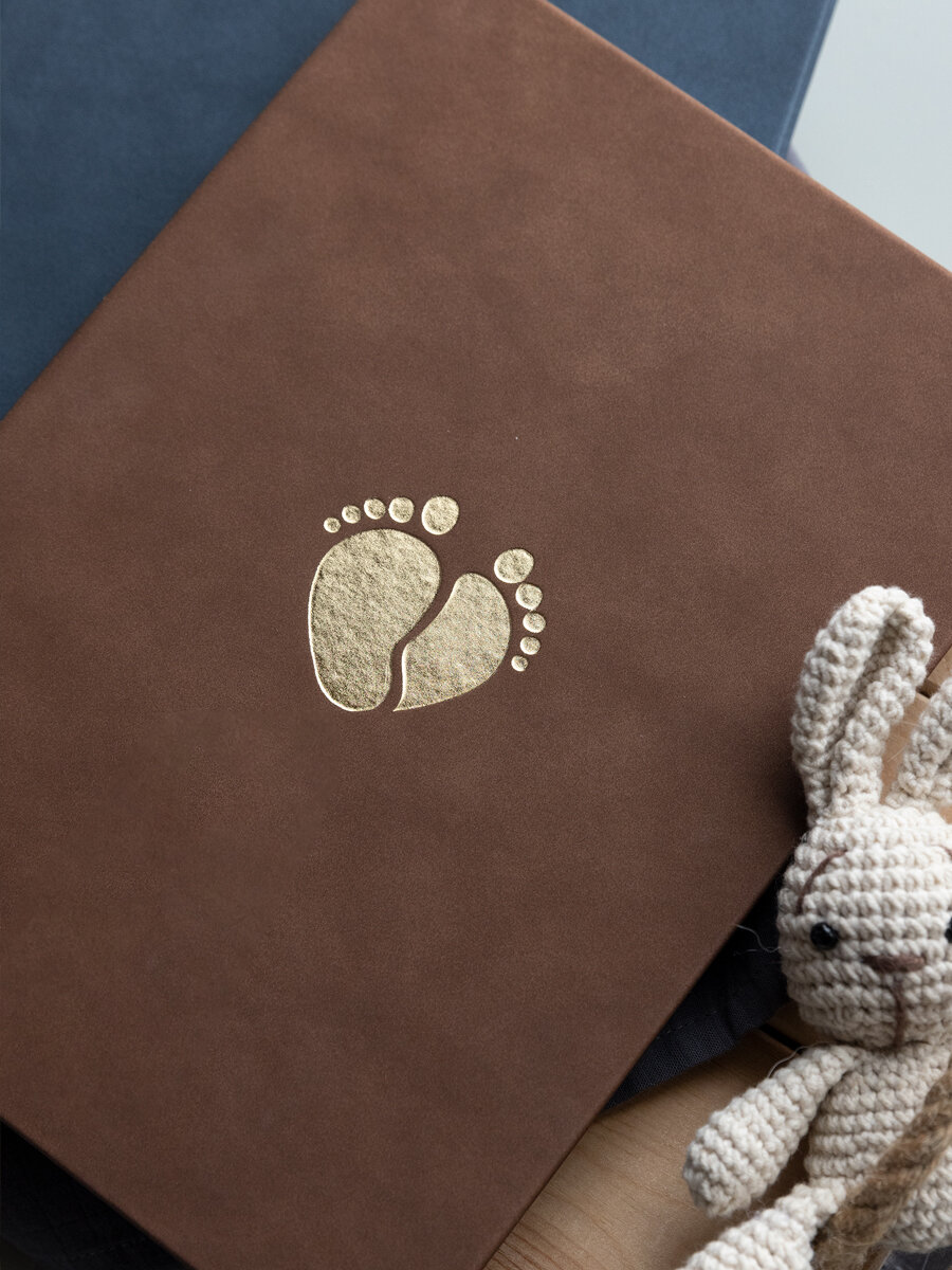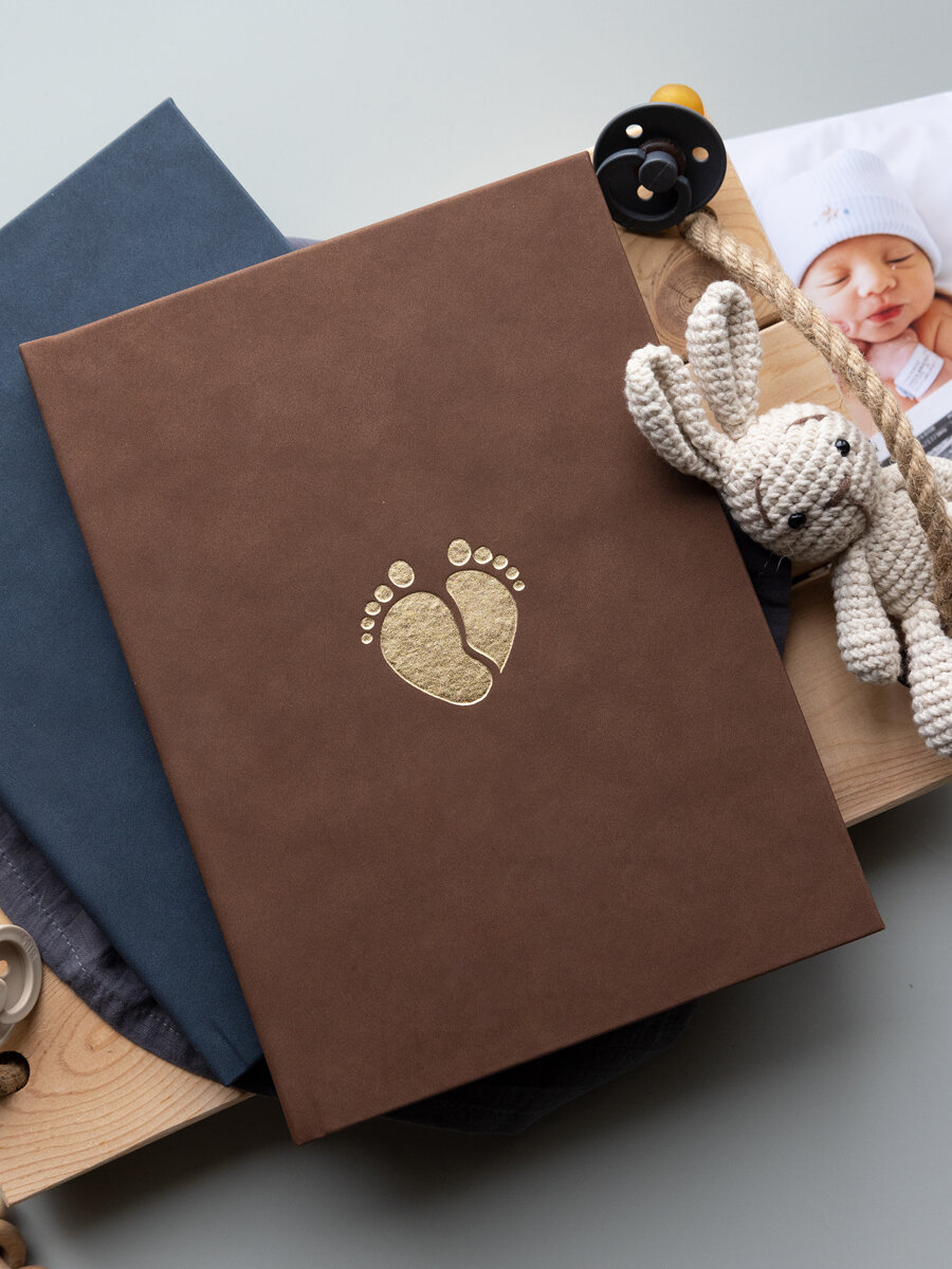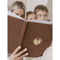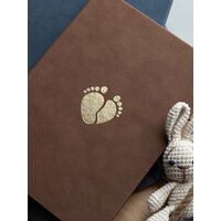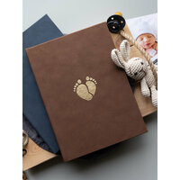 Фотоальбом универсальный, для мальчика, для девочки, - идеален для тех, кто еще не знает пол ребенка! Обложка в натуральном коричневом цвете с золотыми пяточками - отлично подойдет для любого домашнего интерьера и займет достойное место на вашей книжной полке!
