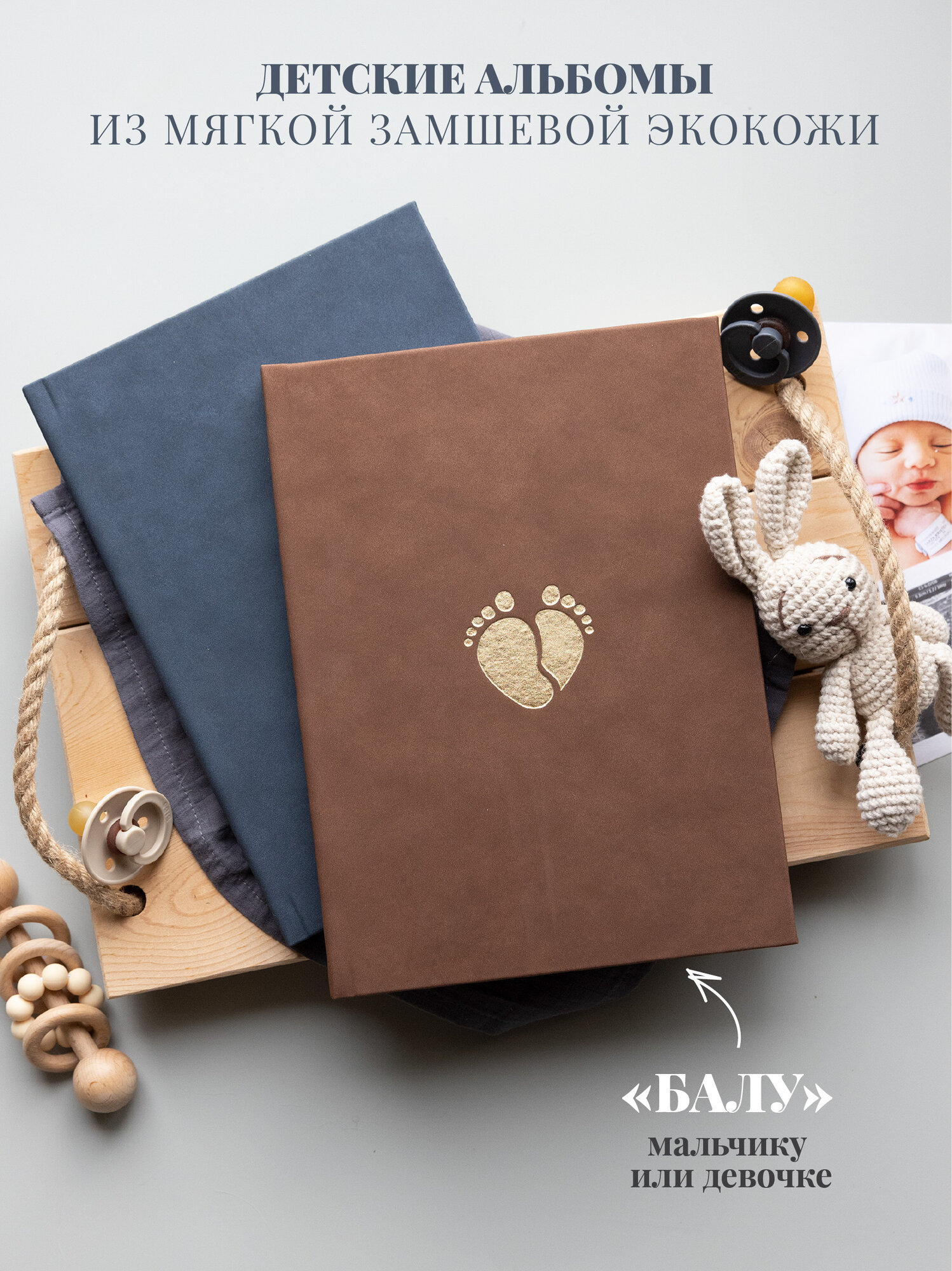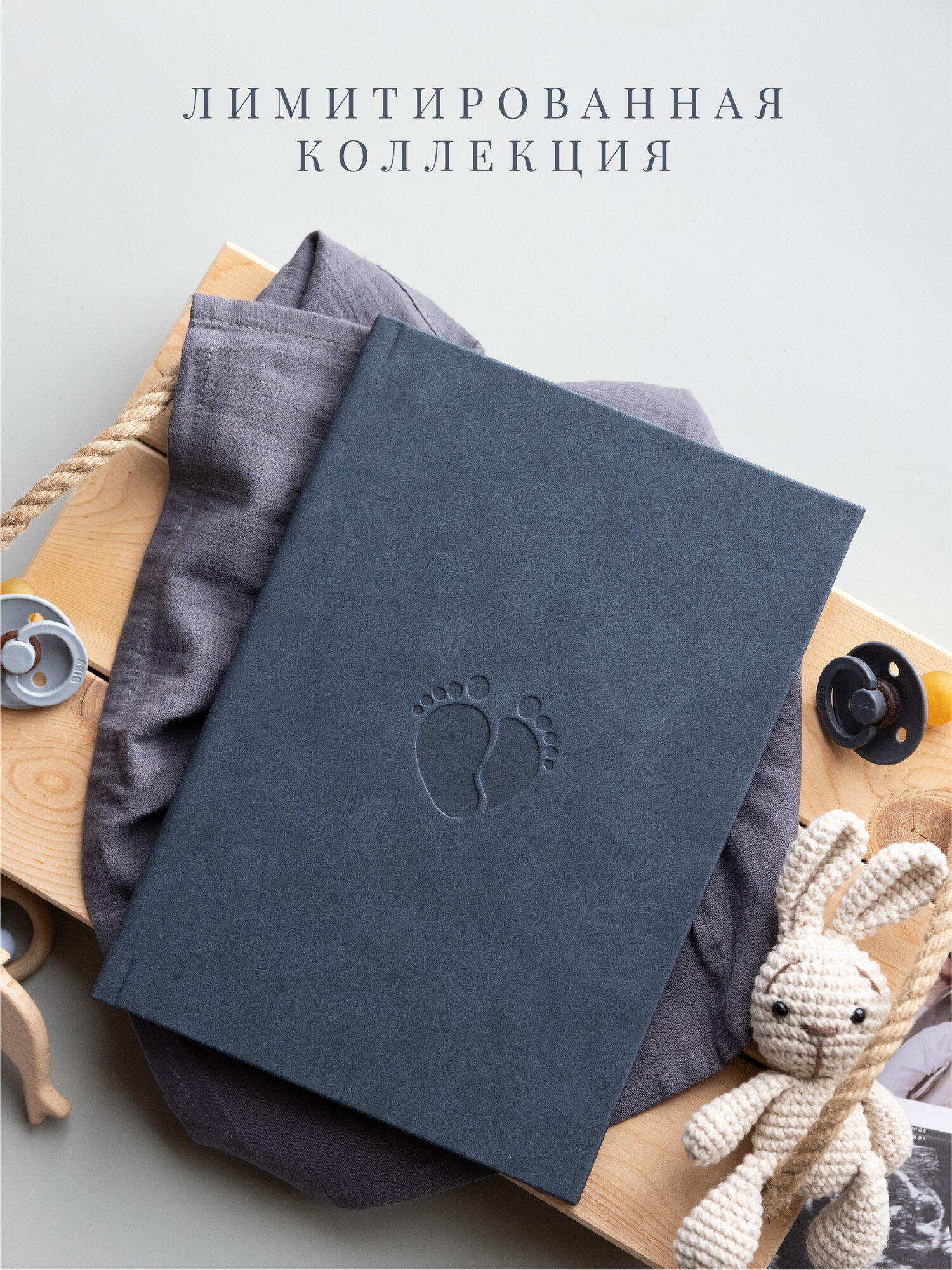 Фотоальбом для мальчика. Обложка в натуральном тёмно-синем цвете с пяточками - отлично подойдет для любого домашнего интерьера и займет достойное место на вашей книжной полке!
