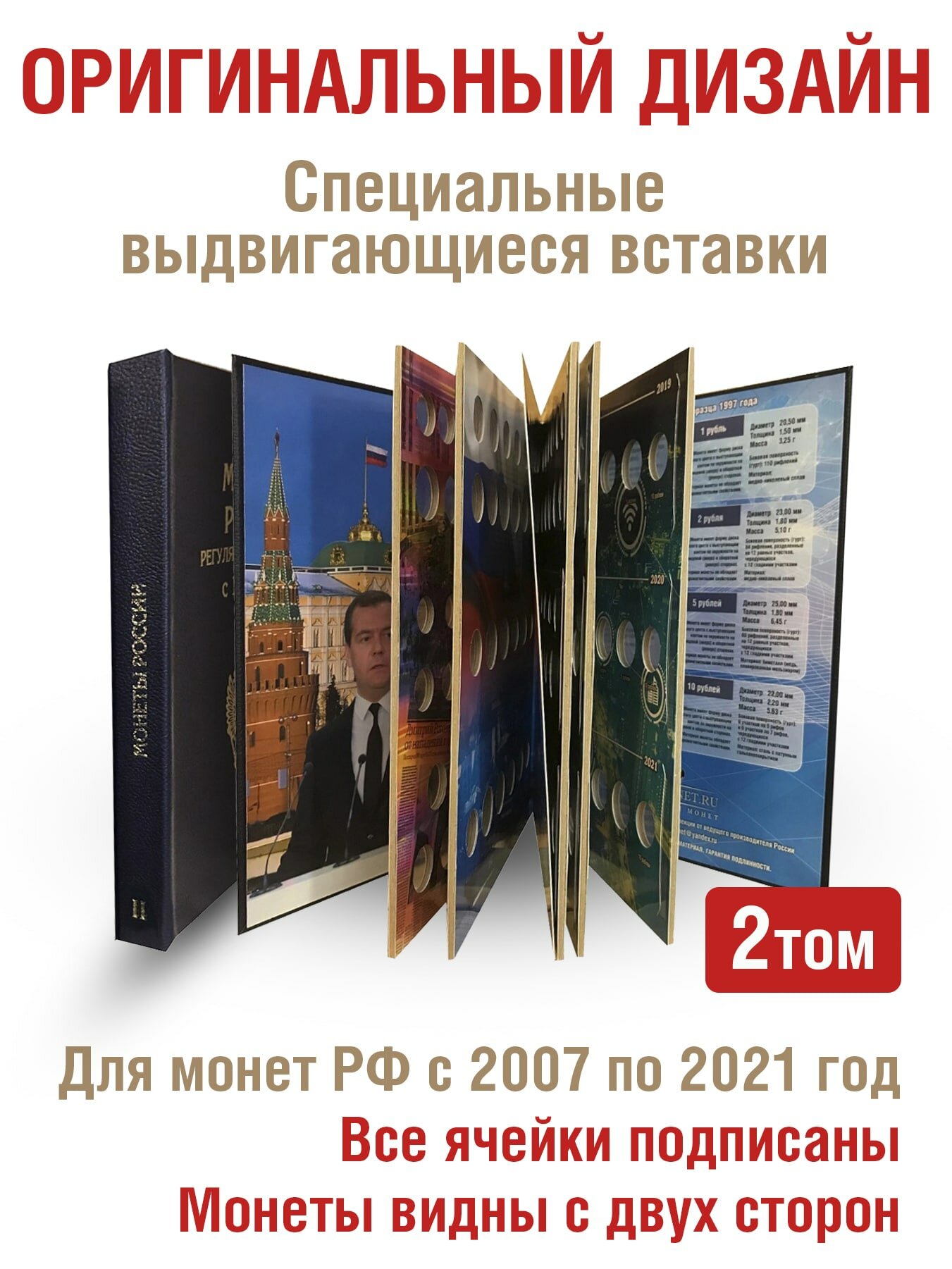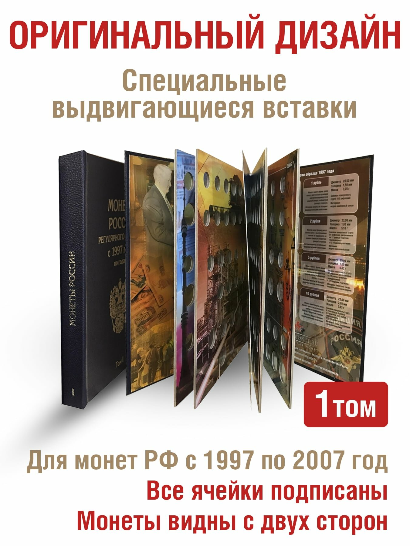 Альбом «премиум» в 2-х томах для хранения монет России регулярного выпуска с 1997г. по годам. Цвет черный.: сравнение цен, характеристики, фото, актуальное наличие и цены.