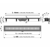 Душевой лоток Alcadrain Simple с решеткой ag100401750 00079272 дополнительные характеристики: Низкая высота монтажа 6,2 см - подходит для реконструкции Устойчивость к химическим повреждениям Возможность надежного соединения желоба и гидроизоляции Комбинированный гидрозатвор (самостоятельно запатентованное решение) Легкоразборный, с возможностью прочистки желоба вплоть до сточной трубы (ø40 мм) Материал: прочный пластик, морозоустойчивый, а также устойчивый к химическим и механическим повреждениям. Тип монтажа: в пол. Размещение: вровень с полом. Выпуск: горизонтальный. Вид затвора: комбинированный. Вид решетки: перфорированная. Диаметр сливного отверстия: 40 мм. Ширина: 60 мм. Длина: 810 мм. Длина решетки: 750 мм. Высота: 75 мм. Цвет решетки: хром. Max пропускная способность: 30 л/мин. Регулировка: по высоте. Материал слива: пластик. Материал решетки: нержавеющая сталь. Комплектация: Водоотводящий желоб, Решетка (высококачественная нержавеющая сталь), Гидроизоляционный воротник, отвечающий длине желоба, Двойной комбинированный гидрозатвор, Крепежный комплект (шурупы, дюбели, 2 пары ножек).
