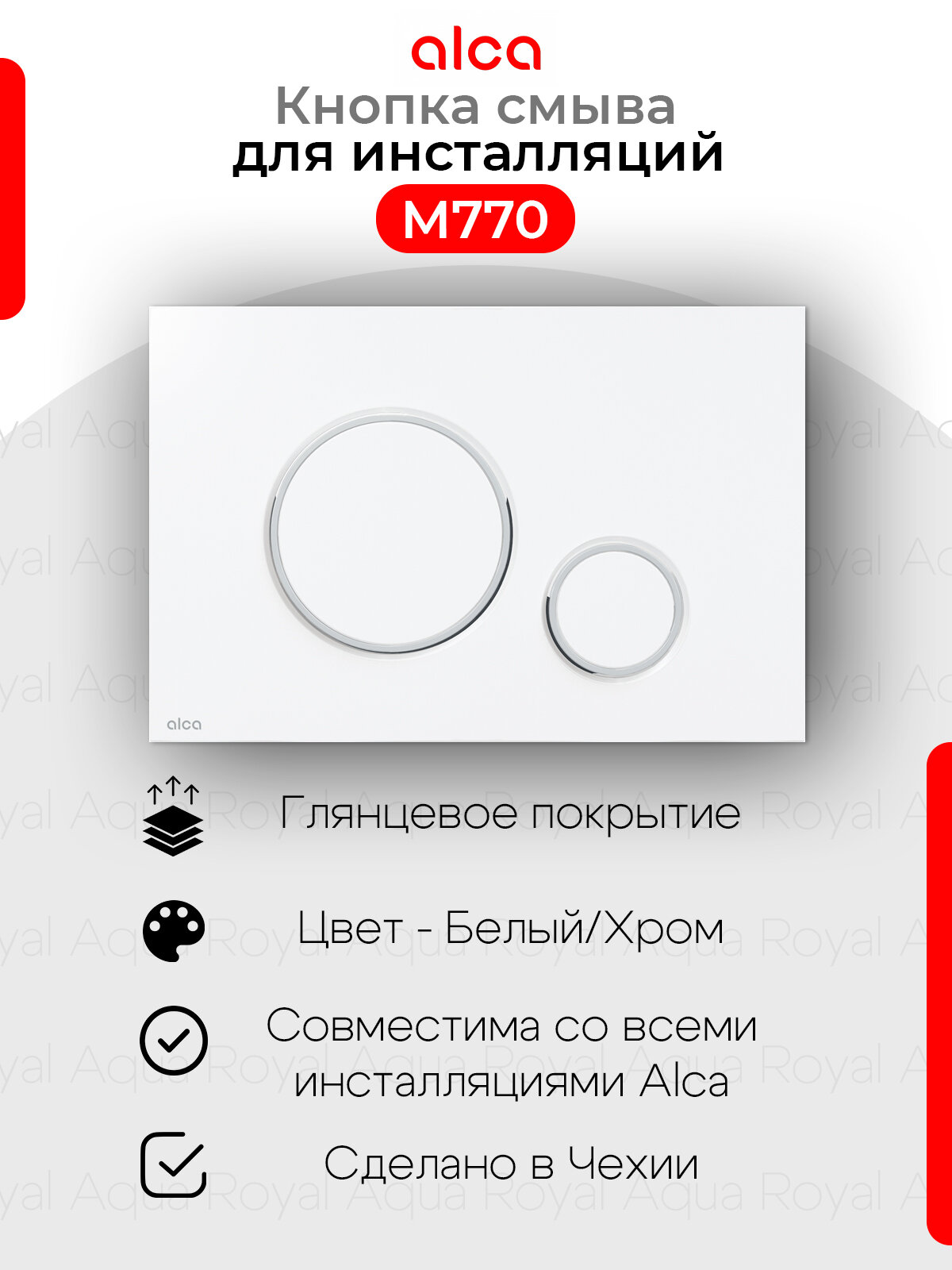 Alcaplast M770 Кнопка управления для скрытых систем инсталляции, Белый глянец с хром окантовкой: сравнение цен, характеристики, фото, актуальное наличие и цены.
