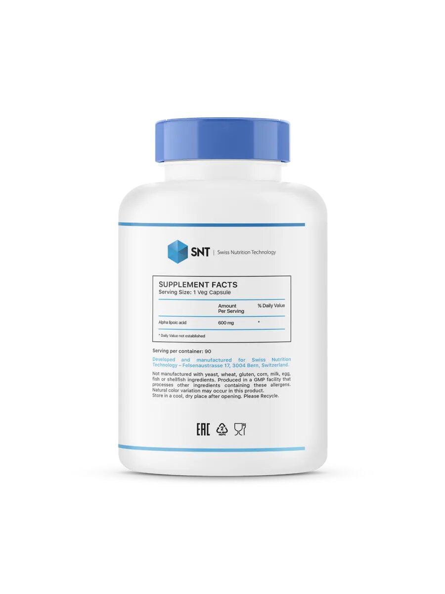 В одной (1) порции (1 капсула): Альфа-липоевая кислота 600 мг Другие ингредиенты: Стеарат магния (из растительного сырья), оксид кремния, оболочка растительного происхождения.