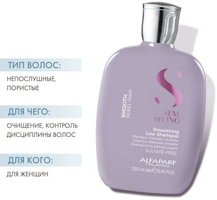 Шампунь Smoothing Low Shampoo нежно очищает непослушные волосы, придаёт гладкость, борется с образованием пушистости и завитков.