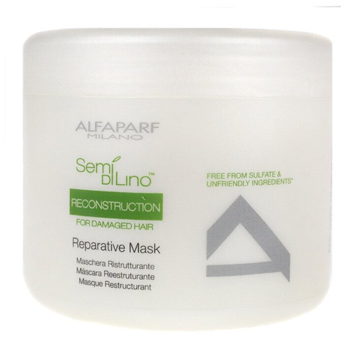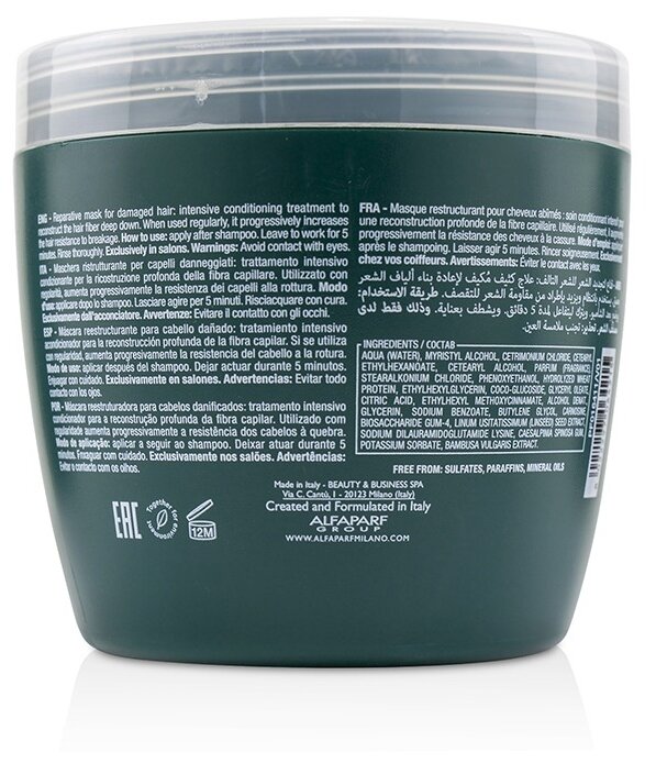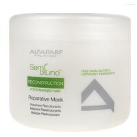 Маска для поврежденных волос REPARATIVE MASK ALFAPARF MILANO линия SEMI DI LINO RECONSTRUCTION для поврежденных, слабых, ломких И безжизненных волос. Маска Reconstruction для поврежденных волос от Alfaparf Milano была разработана по специальной методике для ослабленных, ломких и поврежденных волос. Её отличительные свойства и бережный состав подарят благоприятное воздействие на кожу головы, сделают волосы более мягкими и здоровыми, придадут локонам свежий вид. Экстракт семени льна отлично увлажняет и питает волосы, делая их более послушными после применения маски. Экстракт экзотического растения цезальпинии обеспечит волосы естественной красотой. Способ применения: нанесите небольшой объем маски на чистые влажные волосы после использования шампуня, легкими массирующими движениями втирайте маску по всей длине волос; оставьте на 5-10 минут, можно использовать тепло, например климазон, тогда волос получит максимальный результат. Если оставить маску на 1-2 минуты вы получите кондиционирующий эффект. После смойте теплой водой. Рекомендуется наносить маску 3-4 раза в неделю. Состав: гидрализованные протеины, вытяжка бамбука, комплекс олигоэлементов. Страна-производитель: Италия Объём: 200 мл. Артикул: 16410 Объём: 500 мл. Артикул: 16411 Описание на Alfaparf Milano Com: Repairs, reconstructs, strengthens Reparative Mask is an intensive conditioning treatment, it helps reconstruct the fiber deep down and gradually increases the hair’s resistance to breakage.