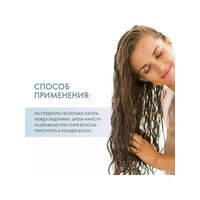 | Способ применения | несколько капель масла растереть на ладонях и нанести на сухие или влажные волосы. Не смывать |