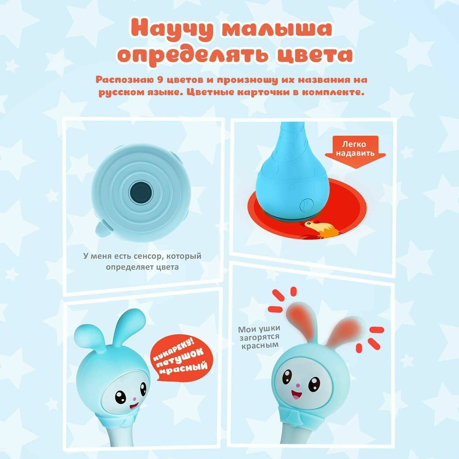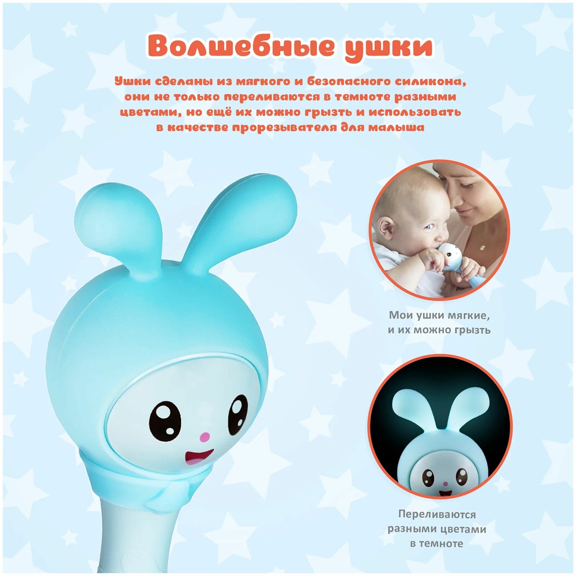 4 часа непрерывной игры без подзарядки; зарядка от USB или сети; режим экономии энергии: через 15 минут непрерывной работы зайка выключается автоматически; Нi-Fi-динамик 26 мм с возможностью регулировки громкости звука; регулятор выполнен в виде хвостика; одна литий-ионная аккумуляторная батарейка; аккумулятор встроен и входит в комплект; температура использования: от -5°C до +40°C