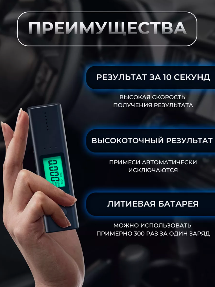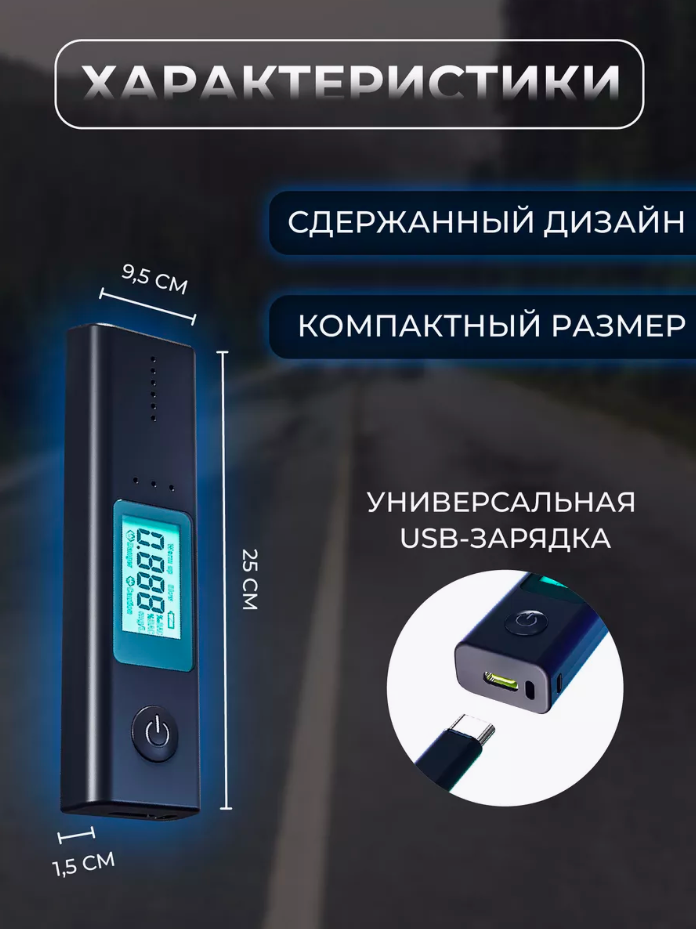 Алкотестер профессиональный бесконтактный, Алкотестер для водителей, Черный