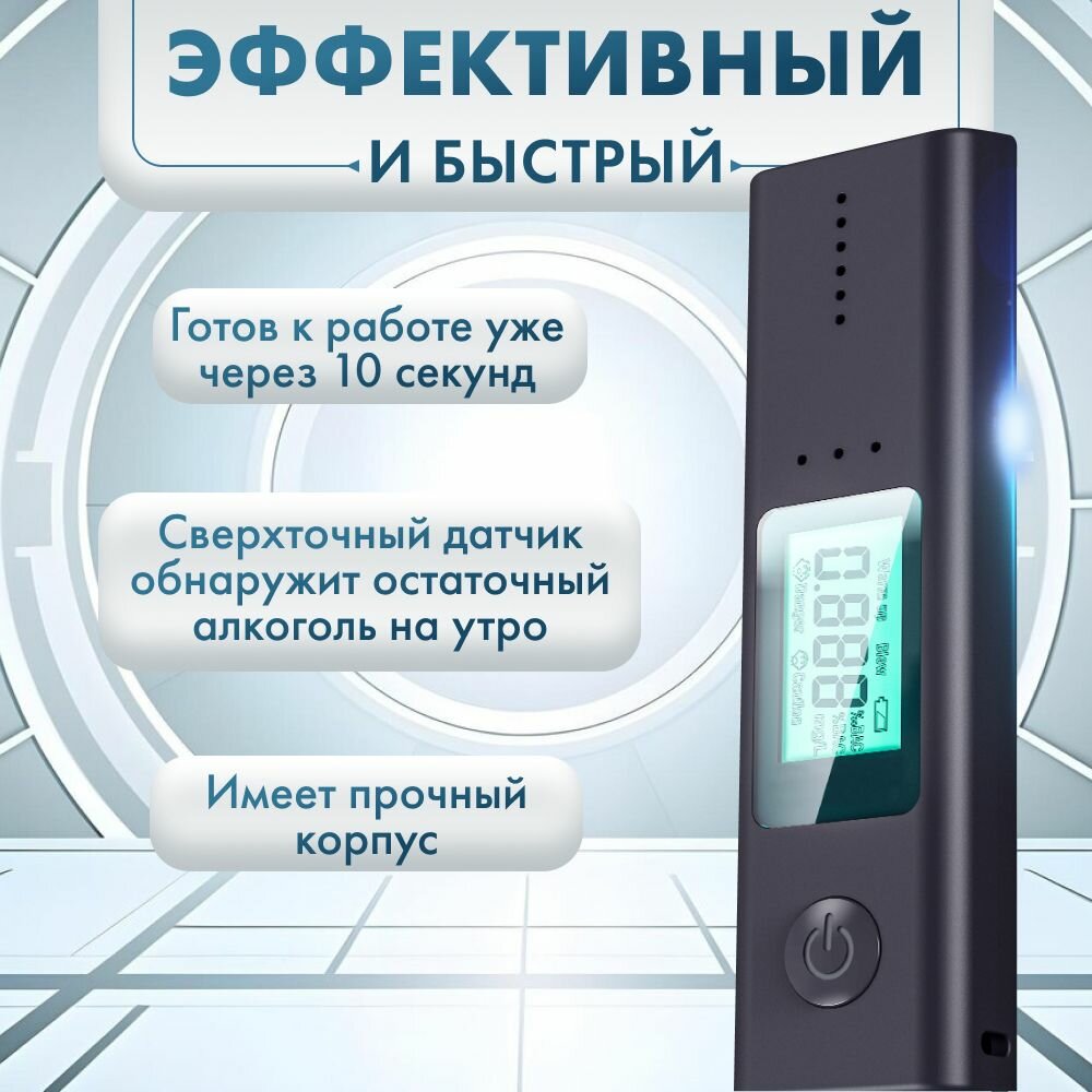 Профессиональный цифровой бесконтактный алкотестер - это уникальное устройство, которое предназначено для быстрой и точной оценки уровня алкоголя в выдыхаемом воздухе. Этот алкотестер обладает рядом отличительных свойств, которые делают его идеальным выбором для использования в различных областях, включая правоохранительные органы, медицинские учреждения, а также на предприятиях и водителями. Модель оборудована инновационной технологией, которая позволяет измерять уровень алкоголя в выдыхаемом воздухе без необходимости использования специальных пробирок или мундштука. Встроенный сенсорный экран и интуитивно понятный пользовательский интерфейс делают работу с устройством максимально простой и удобной. Одной из ключевых особенностей этого алкотестера является его высокая точность измерений. Благодаря использованию современных датчиков и алгоритмов, устройство способно определять уровень алкоголя с погрешностью менее 0,01%, что позволяет получать достоверные результаты в течение нескольких секунд после проведения теста. Компактные размеры и небольшой вес делают этот алкотестер портативным и удобным в использовании в любых условиях. Встроенная аккумуляторная батарея обеспечивает длительное автономное использование, а возможность подключения к источнику питания по USB делает устройство еще более универсальным. Благодаря своей надежности и точности, профессиональный цифровой бесконтактный алкотестер станет незаменимым помощником для правоохранительных органов при выявлении нарушений ПДД, а также для владельцев предприятий, желающих обеспечить безопасность труда своих сотрудников. Также этот алкотестер может использоваться медицинскими учреждениями для диагностики состояния пациентов, наличие алкогольной интоксикации. Мы уверены, что профессиональный цифровой бесконтактный алкотестер станет незаменимым помощником в решении задач контроля над уровнем алкоголя и безопасности общества. Сделайте приятный и полезный подарок себе и своим близким, заказывайте алкотестер прямо сейчас!
