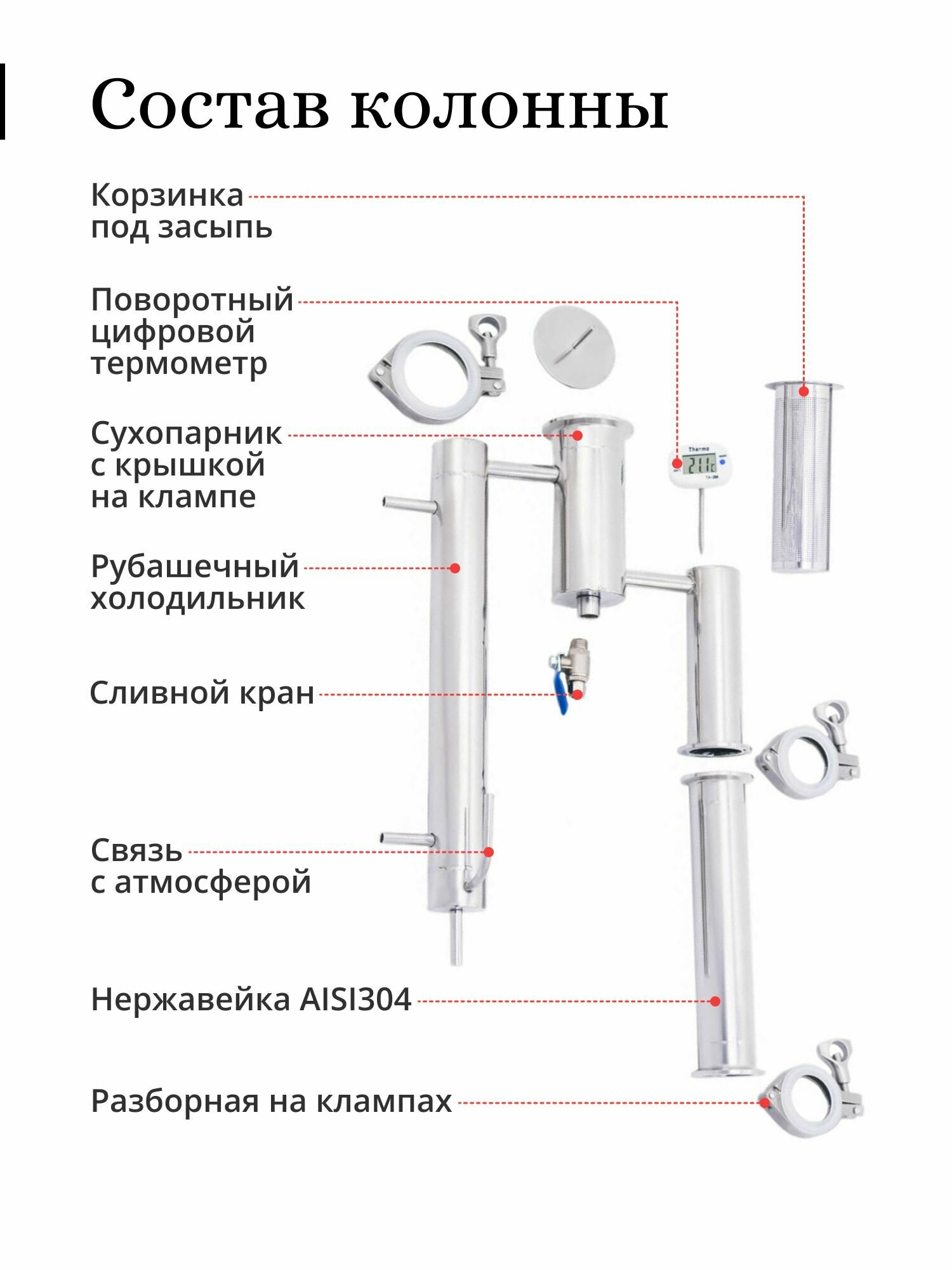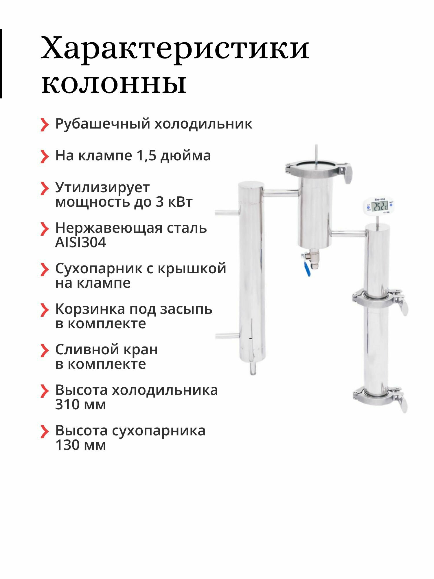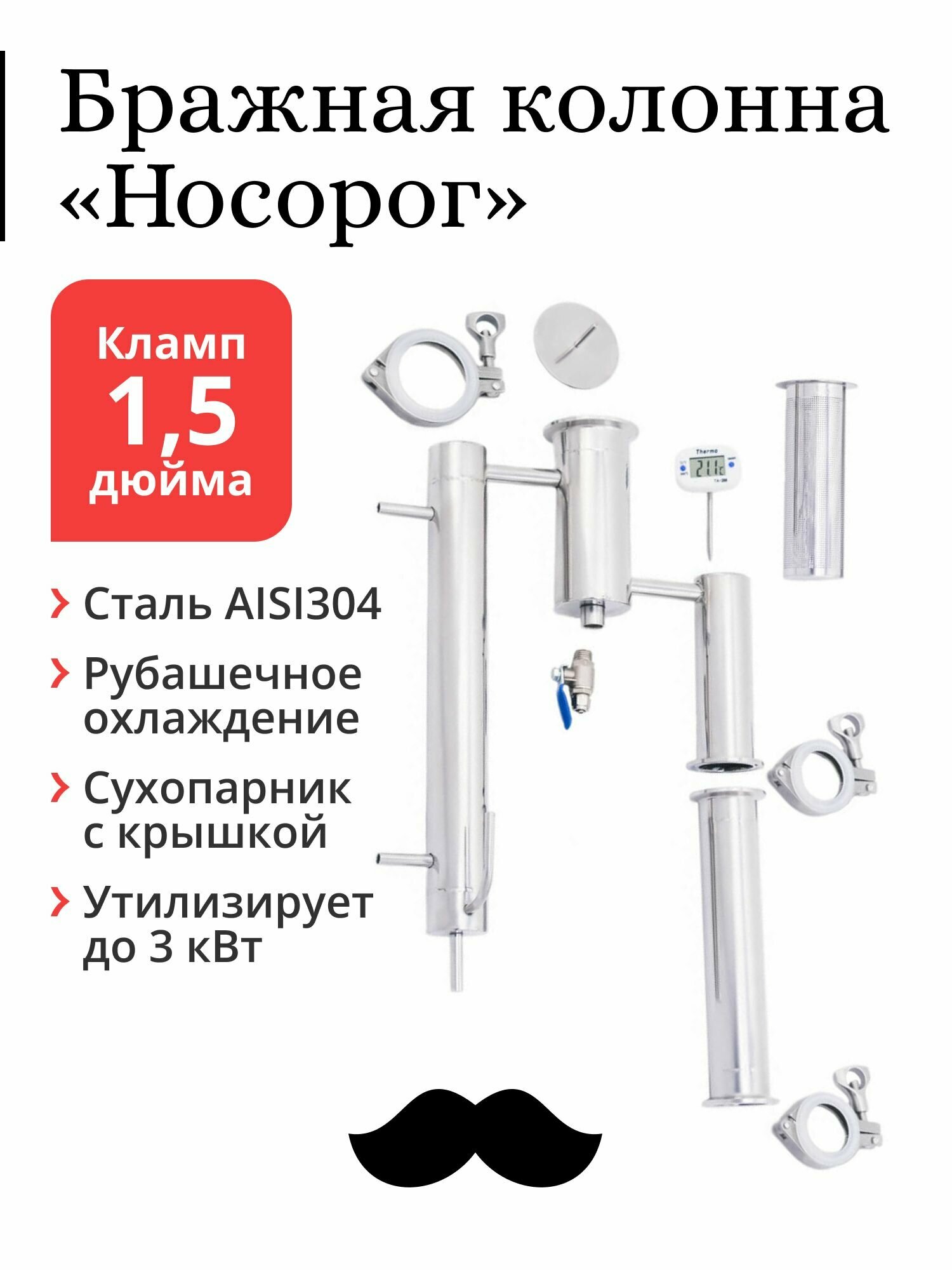 Алкозверь «Носорог», бражная колонна с сухопарником и рубашечным холодильником, на клампе 1,5 дюйма: сравнение цен, характеристики, фото, актуальное наличие и цены.