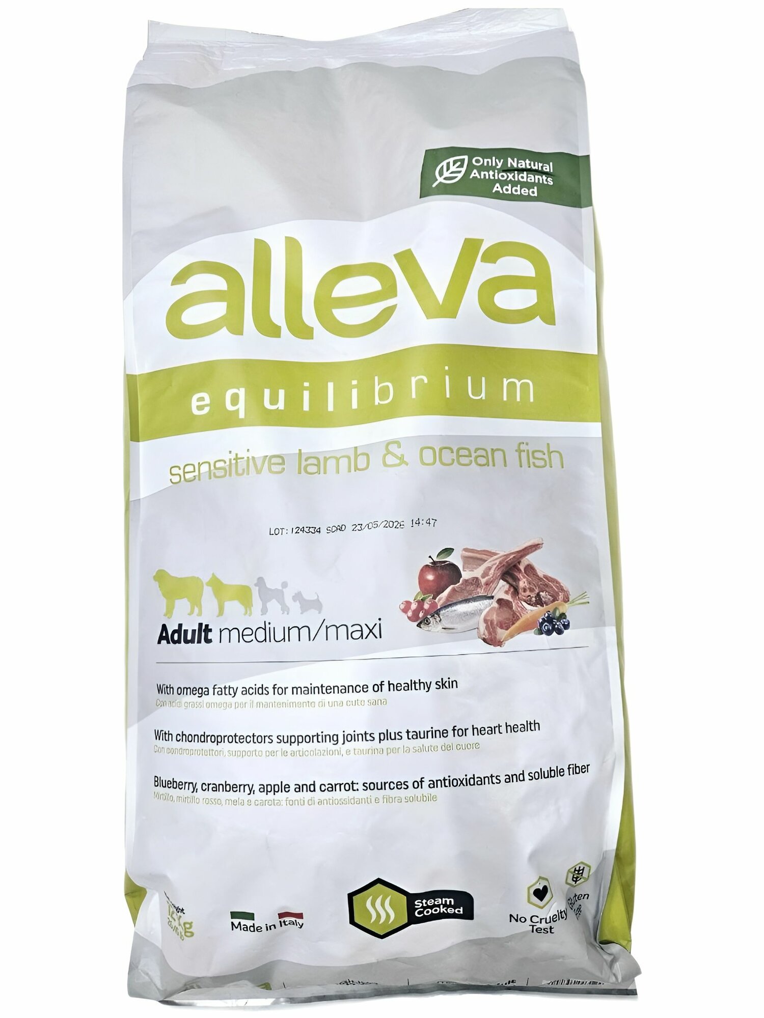 Купить Alleva Equilibrium Sensitive Lamb & Ocean Fish Medium/Maxi сухой корм для собак 12 кг с доставкой по всей России.
