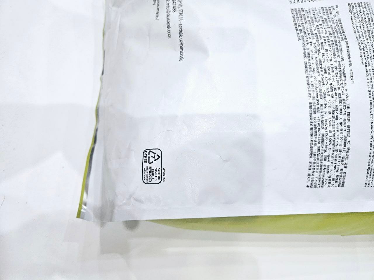| Пищевая ценность | сырой протеин – 28,00%, сырой жир – 15,00%, сырая клетчатка – 2,00%, сырая зола – 6,50%, Кальций – 1,40%, Фосфор – 0,90%, Омега-6 – 1,40%, Омега-3 – 0,32%, глюкозамин – 400 мг/кг; хондроитин сульфат – 350 мг/кг |