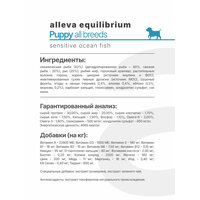 ALLEVA EQUILIBRIUM SENSITIVE OCEAN FISH PUPPY MINI/MEDIUM KG 5 / Полнорационный сухой корм Аллева Эквилибриум Сенситив Океаническая Рыба для щенков, беременных и кормящих сук мелких и средних пород 5 кг. Alleva — полнорационные корма для кошек и собак, гарантия правильного и здорового питания для каждого питомца, строгий контроль качества на каждом этапе производства, лучшее отборное сырье и натуральные фитонутриенты. Серия Equilibrium — продукты, приготовленные по собой формуле на пару, для животных с чувствительным пищеварением и склонностью к аллергиям. В состав кормов Alleva Equilibrium добавлены фрукты и овощи (черника, клюква, яблоко и морковь) в качестве дополнительного источника растворимой клетчатки, витаминов и минералов, а также природных антиоксидантов, которые обеспечивают свежесть корма на протяжении всего срока годности. Регулярное потребление корма Alleva Equilibrium устраняет дискомфортные ощущения в желудке и кишечнике животного, способствует заживлению микротрещин и расчесов на коже. Гарантированный анализ: сырой протеин – 30,00%, сырой жир – 20,00%, сырая клетчатка – 1,70%, сырая зола – 7,50%, Кальций – 1,50%, Фосфор – 1,10%, Омега-6 – 1,80%, Омега-3 – 2,70%, докозагексаеновая кислота (DHA) - 1,50%; эйкозапентаеновая кислота (EPA) - 1,00%, глюкозамин – 500 мг/кг; хондроитин сульфат – 400 мг/кг. Энергетическая ценность: 4065 ккал/кг; 17,10 МДж/кг.