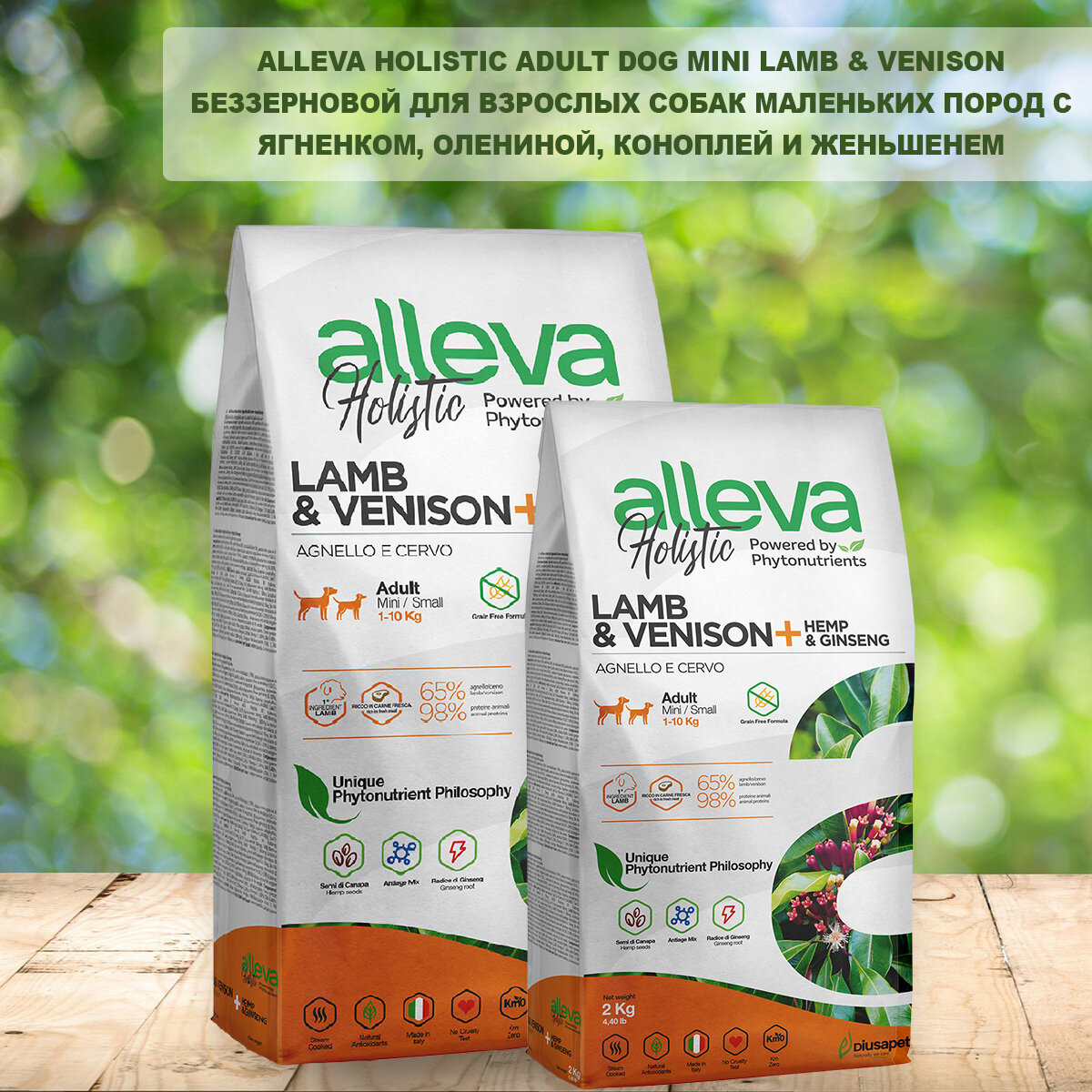 ALLEVA HOLISTIC ADULT DOG MINI LAMB & VENISON беззерновой для взрослых собак маленьких пород с ягненком, олениной, коноплей и женьшенем (2 кг): сравнение цен, характеристики, фото, актуальное наличие и цены.