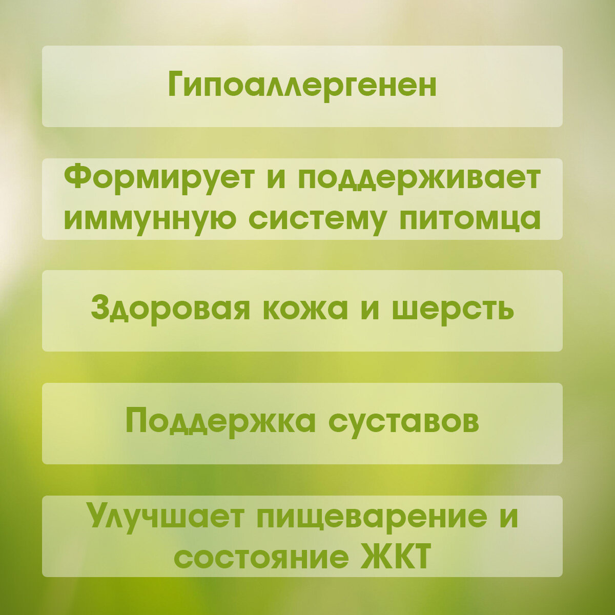 | Минеральные вещества | кальций – 1,60%, Фосфор – 1,30%, Натрий – 0,50%, Магний - 0,09%; Омега-6 – 2,50%, Омега-3 – 1,30%, докозагексаеновая кислота (DHA) - 0,40%; эйкозапентаеновая кислота (EPA) - 0,70%; глюкозамин – 1300 мг/кг; хондроитин сульфат – 1100 мг/кг. |