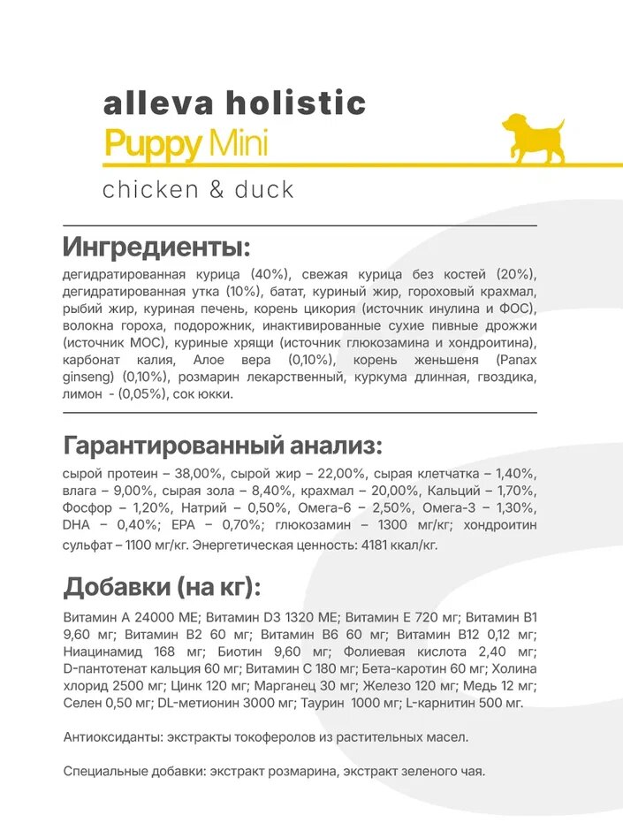 Alleva Holistic Сухой корм для щенков и юниоров мини пород, с курицей и уткой, алое вера и женьшенем 800гр: сравнение цен, характеристики, фото, актуальное наличие и цены.