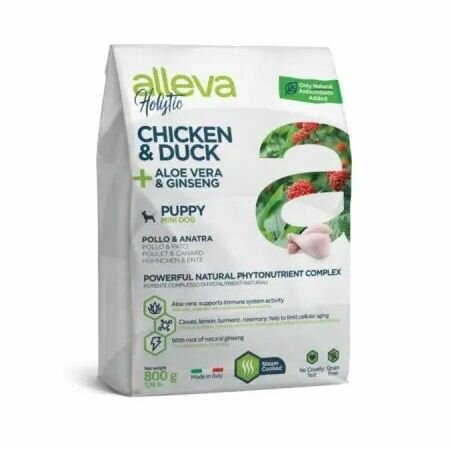 Купить Alleva Holistic Сухой корм для щенков и юниоров мини пород, с курицей и уткой, алое вера и женьшенем 800гр с доставкой по всей России.