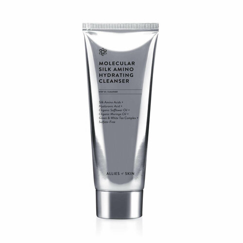 Молекулярное очищающее средство Allies Of Skin Molecular Silk Amino Hydrating Cleanser для ежедневного бережного умывания. Не содержит сульфатов. Имеет комфортный pH 5,5.