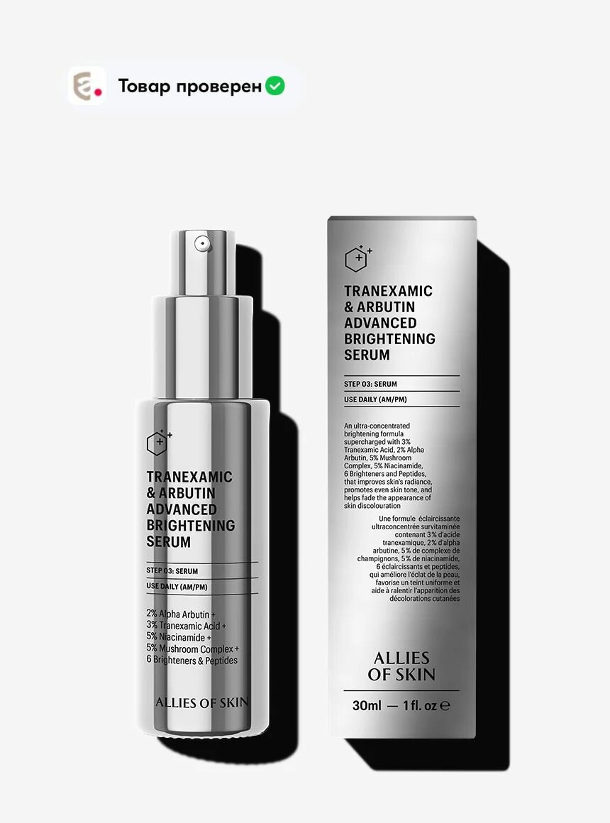 | Состав | Aqua (Water), Niacinamide, Lactobacillus/Ganoderma Lucidum (Reishi Mushroom) Extract/Lentinus Edodes (Shiitake Mushroom) Extract Ferment Filtrate, C13-15 Alkane, Tranexamic Acid, Glycerin, Alpha-Arbutin, Pentylene Glycol, Butylene Glycol, Tocopheryl Acetate, Palmaria Palmata Extract, Asparagopsis Armata Extract, Helianthus Annuus Seed Oil, Ascophyllum Nodosum Extract, Glycyrrhiza Glabra Root Extract, Pancratium Maritimum Extract, Lactobacillus Ferment, Hydrolyzed Pea, Hydrolyzed Pea Protein, Bisabolol, Panthenol, Tocopherol, Arginine/Lysine Polypeptide, Glucose, Pentapeptide-34 Trifluoroacetate, 1,2-Hexanediol, Caprylyl Glycol, C14-22 Alcohols, Xanthan Gum, Hydrogenated Starch Hydrolysate, C12-20 Alkyl Glucoside, Propanediol, Sorbitan Caprylate, Carbomer, Sodium Phytate, Sodium Succinate, Sodium Chloride, Sorbic Acid, Sodium Benzoate, Potassium Sorbate, Phenoxyethanol |