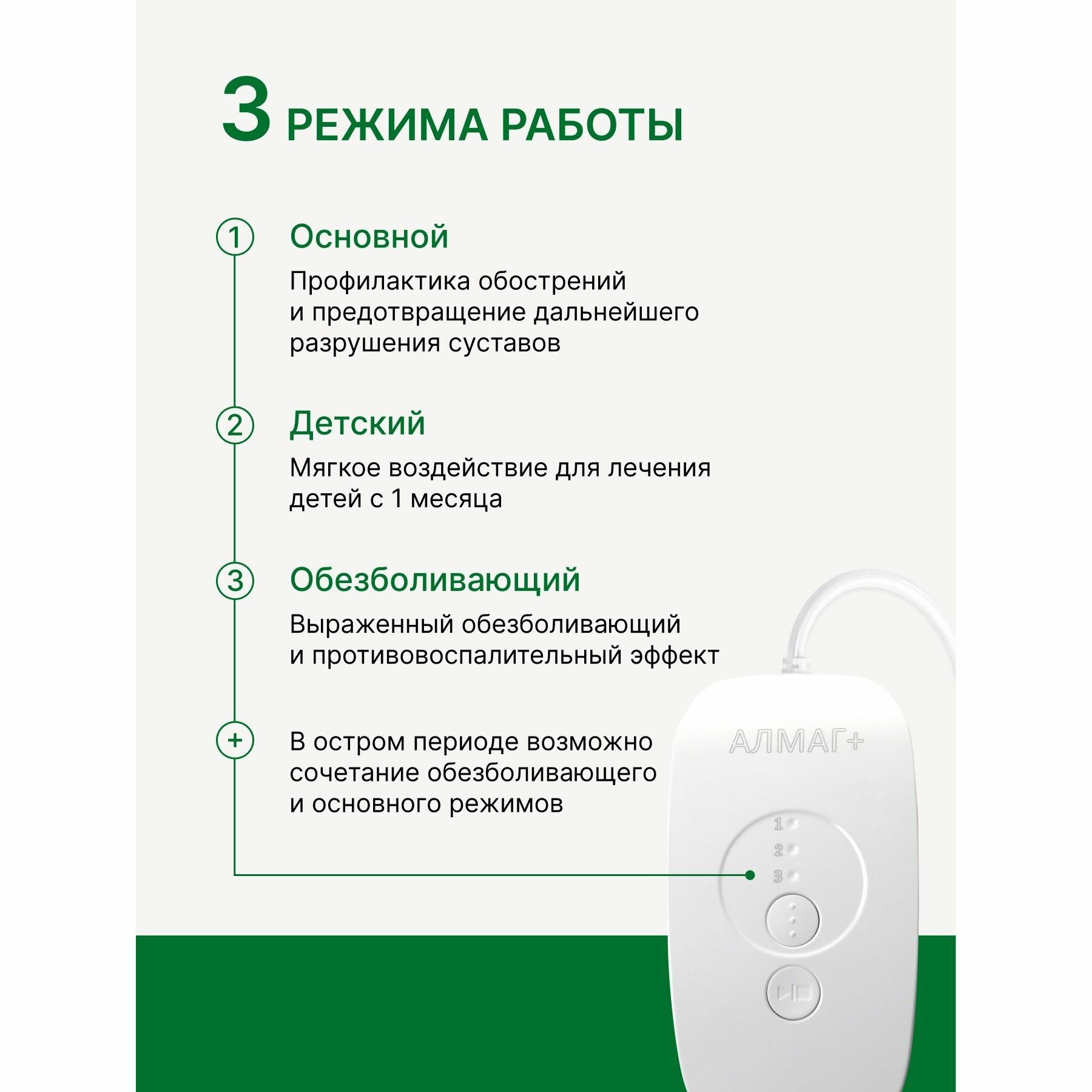 Аппарат Алмаг Plus предназначен для проведения физиотерапевтического лечения, профилактических и восстановительно-реабилитационных мероприятий взрослым и детям в условиях медицинских учреждений, а также в домашних условиях по рекомендации врача.