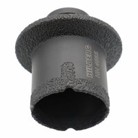Назначение: керамогранит, гранит. Особенности: алмазная коронка с резьбовым соединением М14 для сухого высверливания отверстий и фрезеровки поверхностей в искусственном и натуральном камне с использованием угловой шлифовальной машины (УШМ). Коронка позволяет выполнять две операции за одно действие. Технология производства: вакуумная пайка.