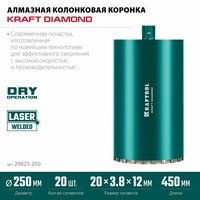 Купить Алмазная Коронка по железобетону, KRAFTOOL DIAMOND 250 мм (450 мм, 1 1/4 , лазерная сварка сегментов), (29825-250) с доставкой по всей России.