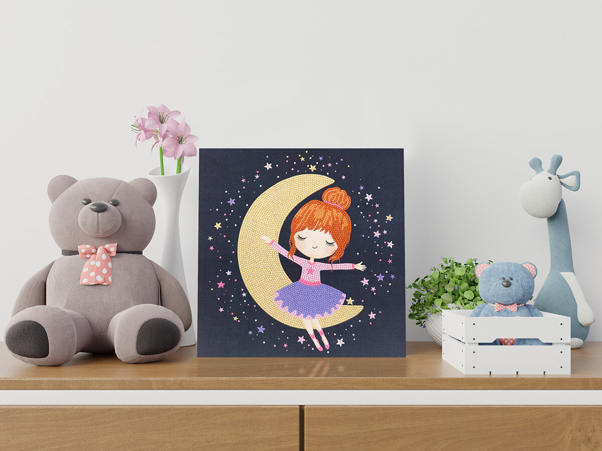 Алмазная мозаика постер на картоне ALBP-295 Лунная девочка ТМ Фрея - это прекрасный набор для тех, кто увлечен творчеством и рукоделием. Размер готовой работы 30х30 см. Выполнение работы не требует специальных навыков, выкладывать картину очень легко и быстро, подходит для взрослых и детей: женщин и мужчин, девочек и мальчиков. В состав входят все необходимое: картон с клеевым слоем и защитной пленкой, круглые стразы: 6 цветов (с запасом 20%), стилус и гель-клей для страз, пластиковый лоток, крепление. Основа из плотного картона не деформируется и не образует заломов. Стразы наклеиваются поверх изображения со схемой на уже нанесенный клеевой слой. Частичная выкладка.