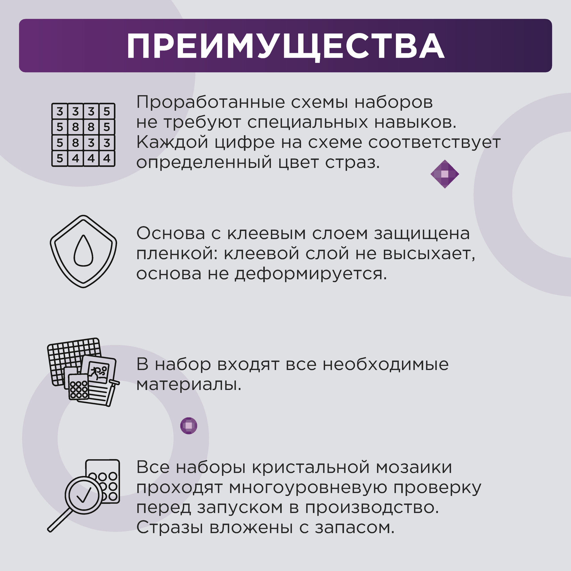 Готовую интерьерную картину можно повесить на стену, при помощи специального крепления, входящего в набор, или поставить на полку, украсив детскую, спальню, гостиную или кухню. Алмазная вышивка - это творческий набор, где увлекательный процесс создания картинок поможет развить мелкую моторику, став вашим любимым хобби. Это отличный мини подарок на новый год, день рождения, 8 марта: для дочери, коллеги или подруги, на 14 и 23 февраля. В ассортименте ТМ Фрея так же представлены картины с алмазной мозаикой на холсте с подрамником 40х50 и 30х40 с частичной и полной выкладкой, с разнообразными милыми сюжетами: цветы, собаки, тигры, природа, сердечки, иконы, котята, море, любовь, новогодние дизайны, кот, art и т. д. Товары для рукоделия и творчества - это бесконечная реализация вашего вдохновения.