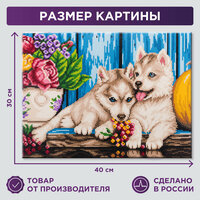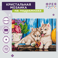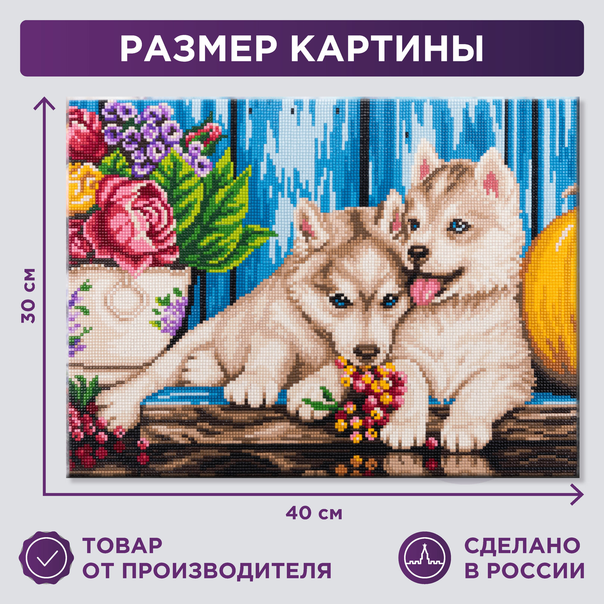 Алмазная мозаика на подрамнике ALPD-047 Щенки Хаски ТМ Фрея - это прекрасный набор для тех, кто увлечен творчеством и рукоделием. Размер готовой работы 40х30 см. Выполнение работы не требует специальных навыков, выкладывать картину очень легко и быстро, подходит для взрослых и детей: женщин и мужчин, девочек и мальчиков. Холст уже натянут на деревянный подрамник, поэтому вам не потребуется оформление в багет. В состав входят все необходимое: холст с клеевым слоем и защитной плёнкой, на деревянном подрамнике с подложкой, квадратные стразы: 32 цвета (с запасом 20%), стилус и гель-клей для страз, пластиковый лоток, крепление, пакеты зип-лок. Благодаря тому, что под холстом находится подложка, исключается возможность провисания основы при выкладывании картины. Стразы наклеиваются поверх изображения со схемой на уже нанесенный клеевой слой. Полная выкладка.