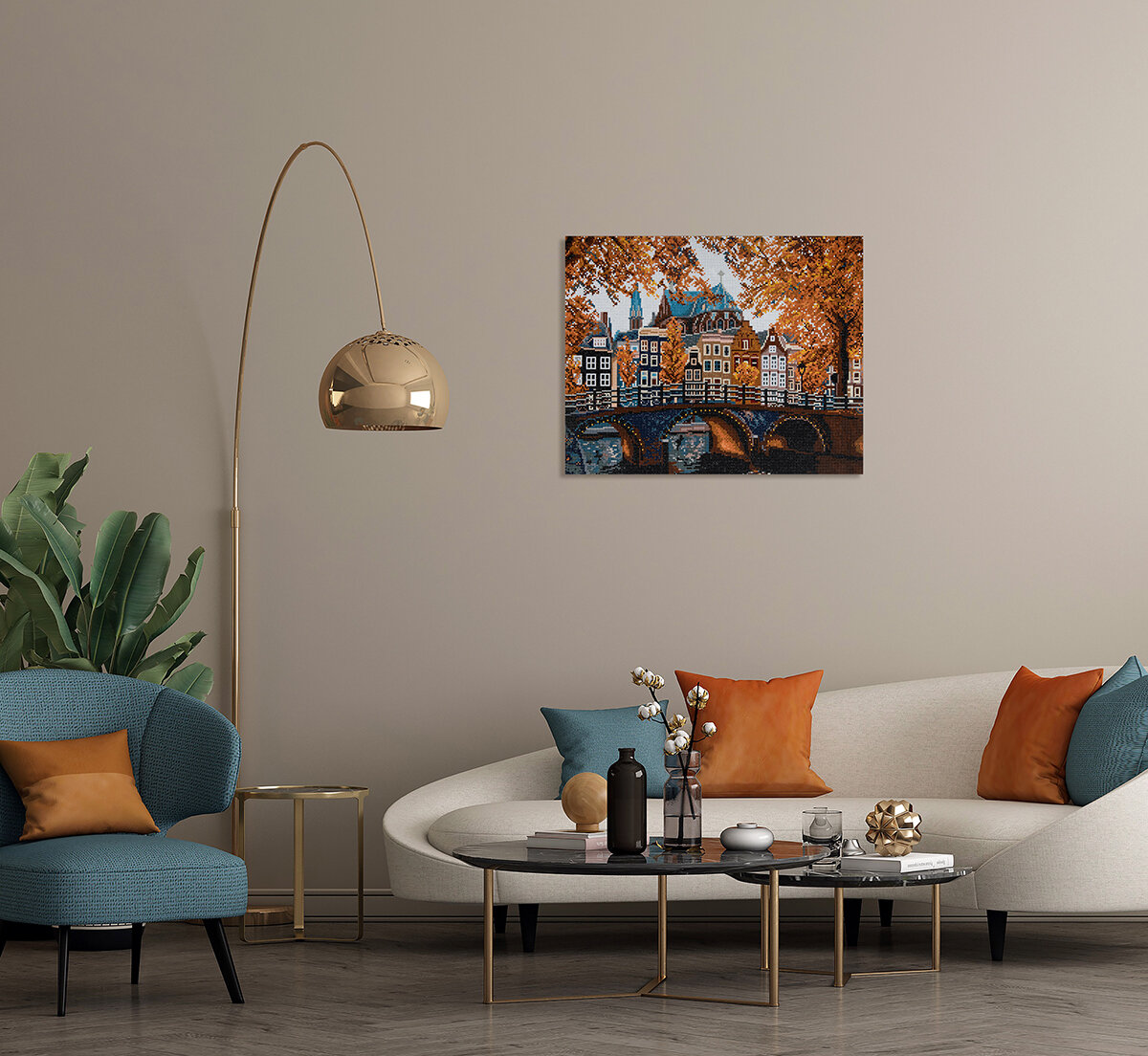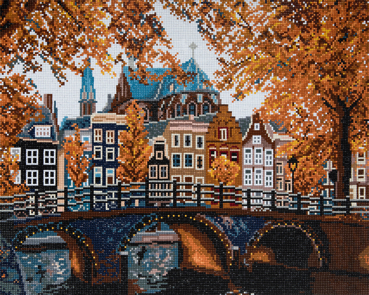 Алмазная мозаика на подрамнике ALPD-146 Осень в Амстердаме ТМ Фрея - это прекрасный набор для тех, кто увлечен творчеством и рукоделием. Размер готовой работы 50х40 см. Выполнение работы не требует специальных навыков, выкладывать картину очень легко и быстро, подходит для взрослых и детей: женщин и мужчин, девочек и мальчиков. Холст уже натянут на деревянный подрамник, поэтому вам не потребуется оформление в багет. В состав входят все необходимое: холст с клеевым слоем и защитной плёнкой, на деревянном подрамнике с подложкой, квадратные стразы: 27 цветов (с запасом 20%), стилус и гель-клей для страз, пластиковый лоток, крепление, пакеты зип-лок. Благодаря тому, что под холстом находится подложка, исключается возможность провисания основы при выкладывании картины. Стразы наклеиваются поверх изображения со схемой на уже нанесенный клеевой слой. Полная выкладка.