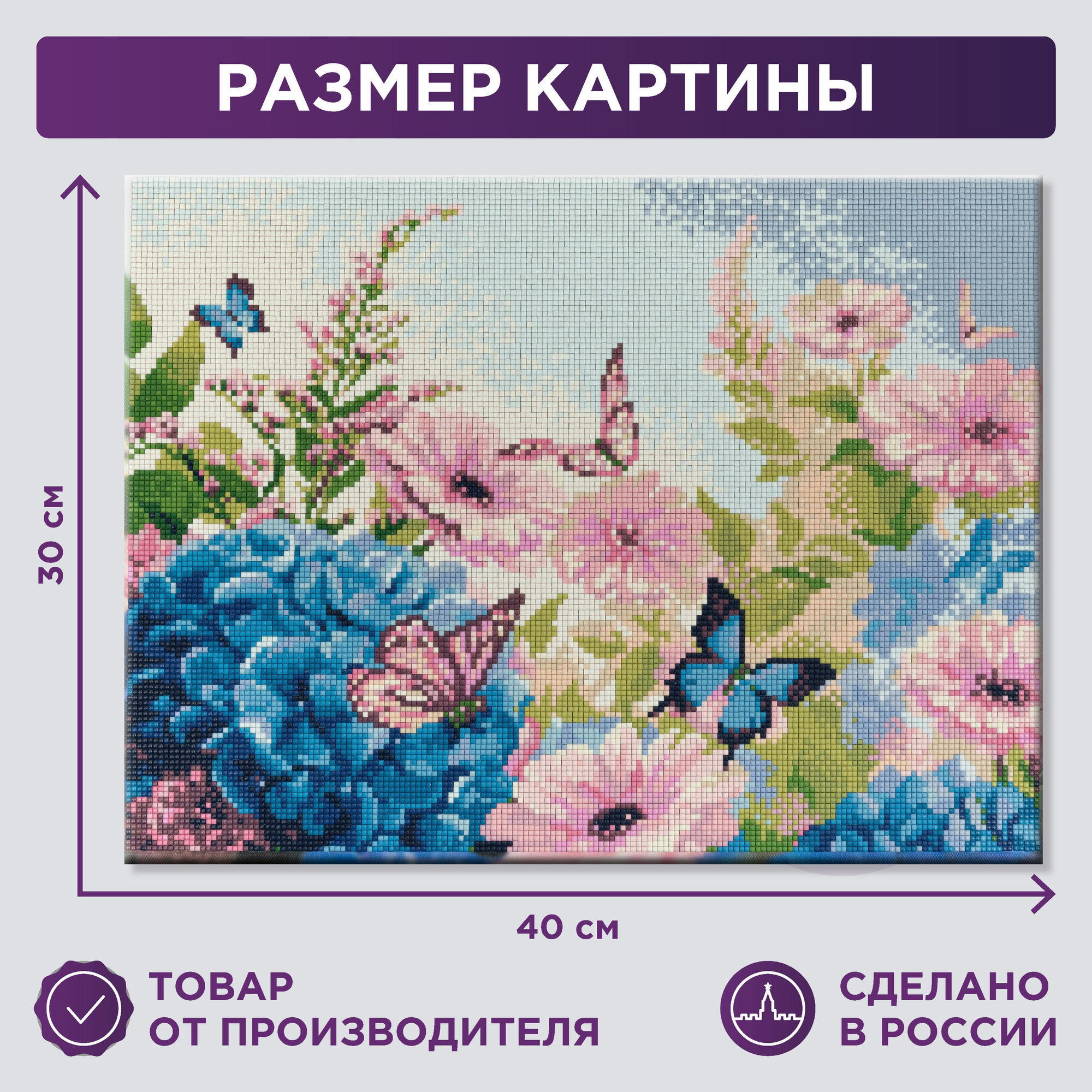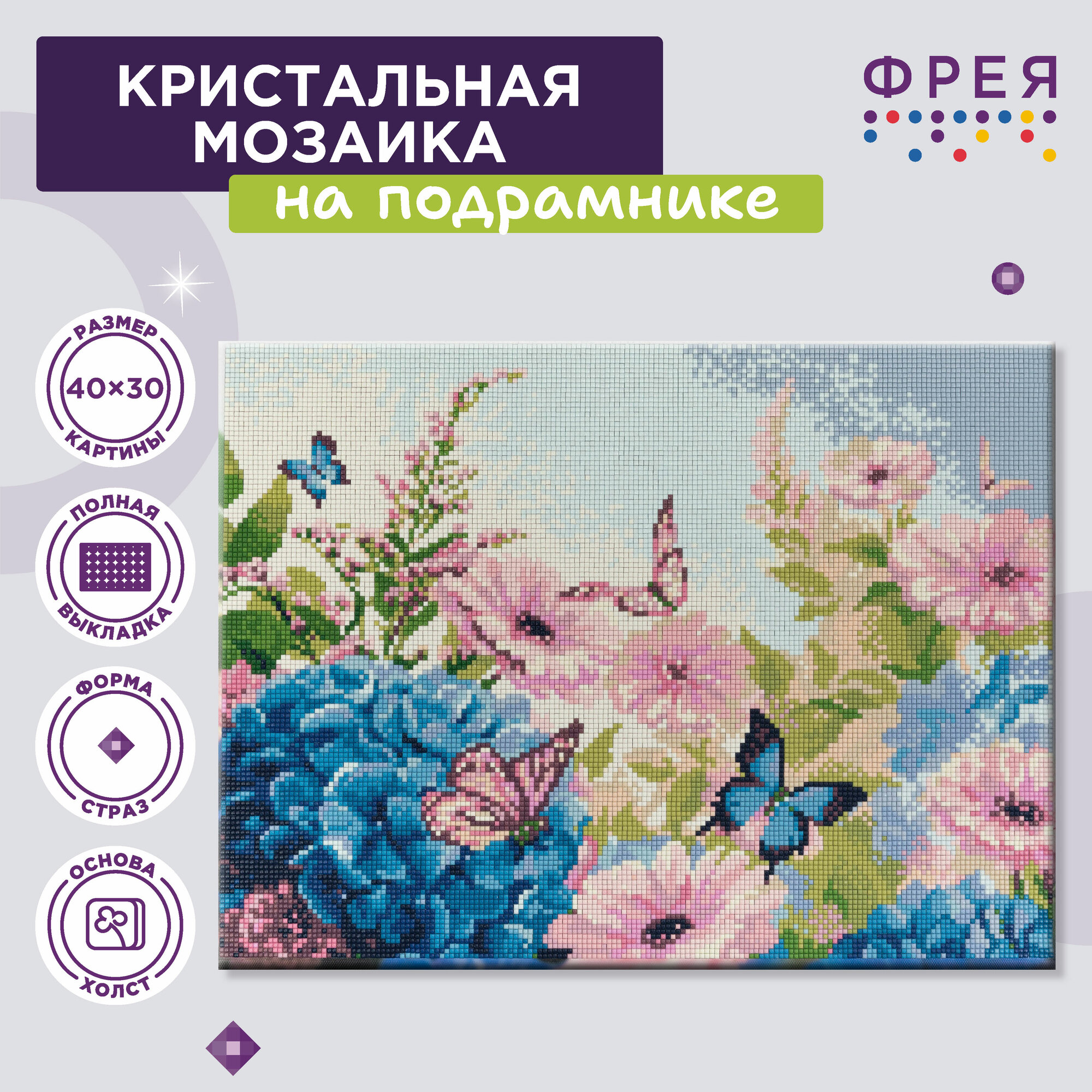 Алмазная мозаика на подрамнике ALPD-164 Бабочки в цветах ТМ Фрея - это прекрасный набор для тех, кто увлечен творчеством и рукоделием. Размер готовой работы 40х30 см. Выполнение работы не требует специальных навыков, выкладывать картину очень легко и быстро, подходит для взрослых и детей: женщин и мужчин, девочек и мальчиков. Холст уже натянут на деревянный подрамник, поэтому вам не потребуется оформление в багет. В состав входят все необходимое: холст с клеевым слоем и защитной плёнкой, на деревянном подрамнике с подложкой, квадратные стразы: 25 цветов (с запасом 20%), стилус и гель-клей для страз, пластиковый лоток, крепление, пакеты зип-лок. Благодаря тому, что под холстом находится подложка, исключается возможность провисания основы при выкладывании картины. Стразы наклеиваются поверх изображения со схемой на уже нанесенный клеевой слой. Полная выкладка.