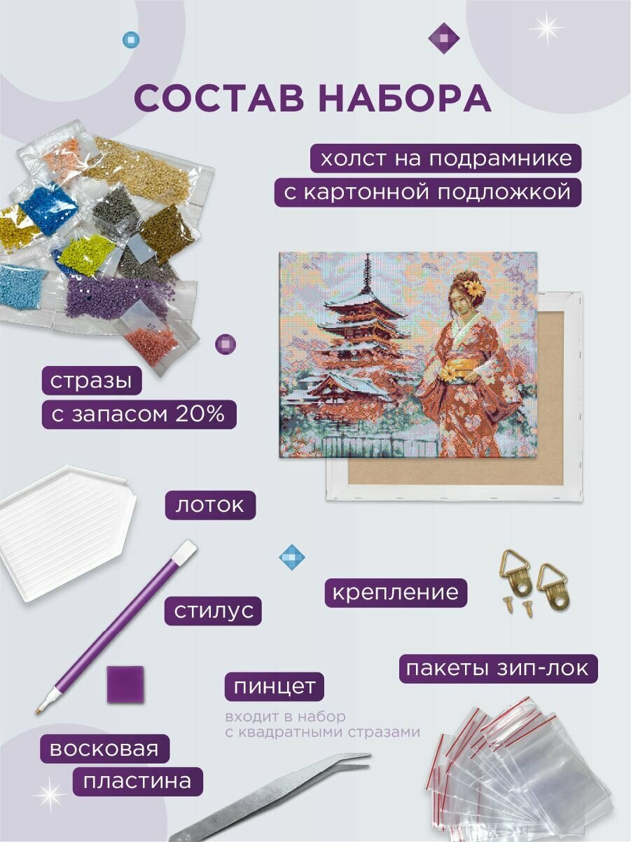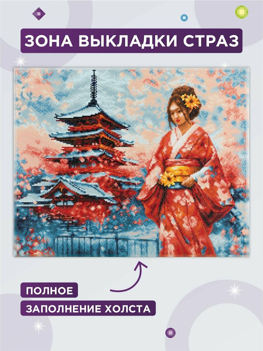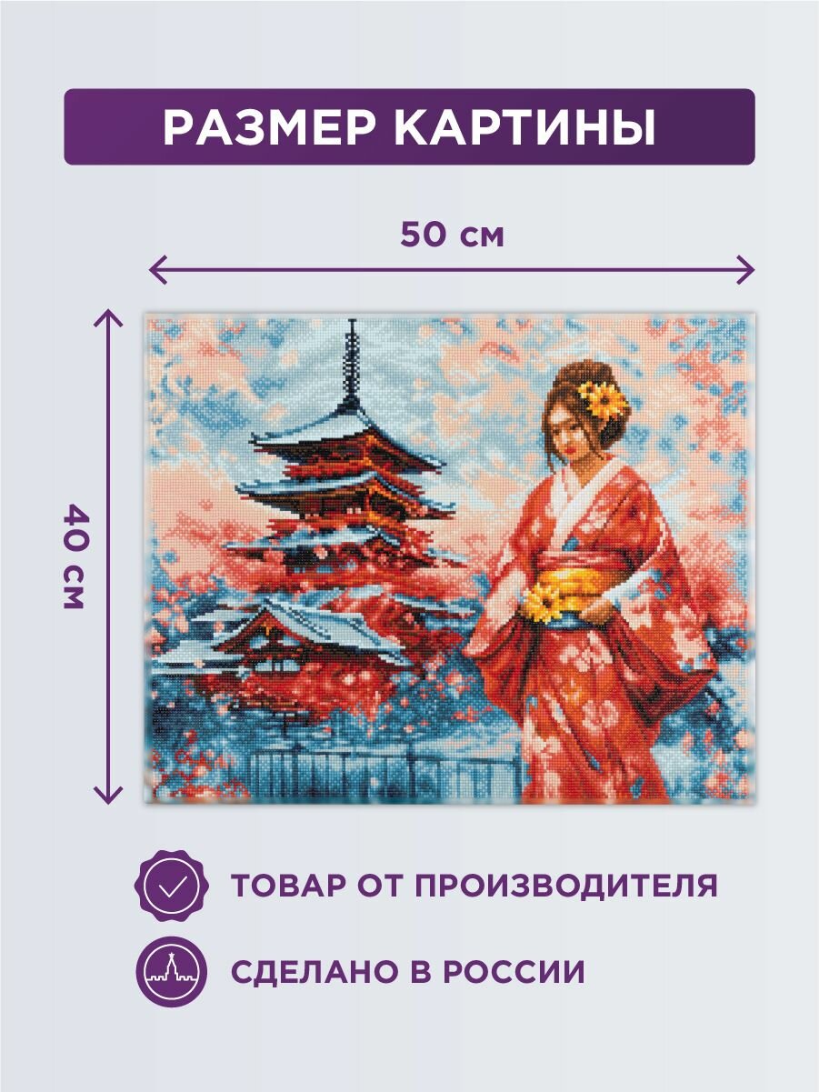 Купить Алмазная (кристальная) мозаика с холстом на подрамнике «фрея» ALPD-273 «Японка у пагоды» 50 х 40 см с доставкой по всей России.
