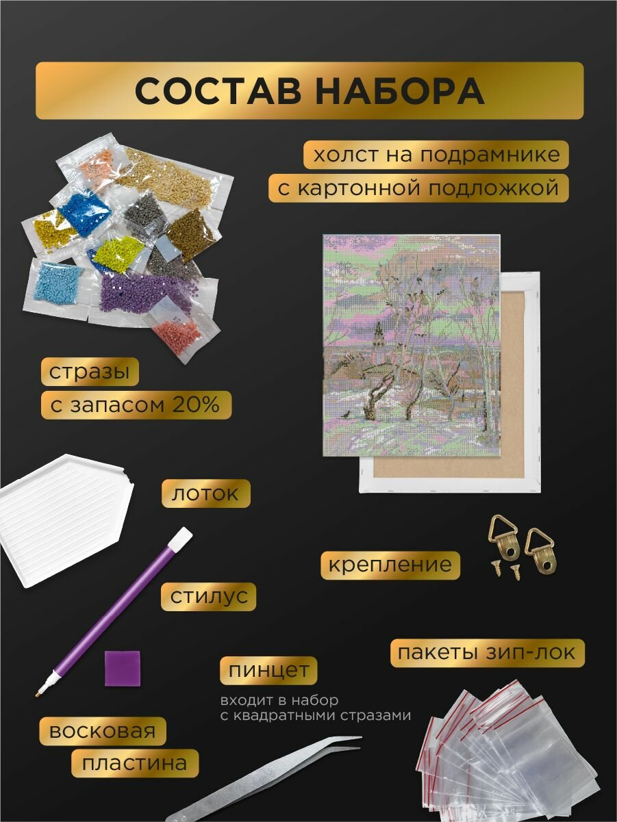 Алмазная мозаика на подрамнике GTG-ALPD-281 Грачи прилетели. Алексей Саврасов ТМ Фрея - это прекрасный набор для тех, кто увлечен творчеством и рукоделием. Размер готовой работы 40х50 см. Выполнение работы не требует специальных навыков, выкладывать картину очень легко и быстро, подходит для взрослых и детей: женщин и мужчин, девочек и мальчиков. Холст уже натянут на деревянный подрамник, поэтому вам не потребуется оформление в багет. В состав входят все необходимое: холст с клеевым слоем и защитной плёнкой, на деревянном подрамнике с подложкой, квадратные стразы: 29 цветов (с запасом 20%), стилус и гель-клей для страз, пластиковый лоток, крепление, пакеты зип-лок. Благодаря тому, что под холстом находится подложка, исключается возможность провисания основы при выкладывании картины. Стразы наклеиваются поверх изображения со схемой на уже нанесенный клеевой слой. Полная выкладка.