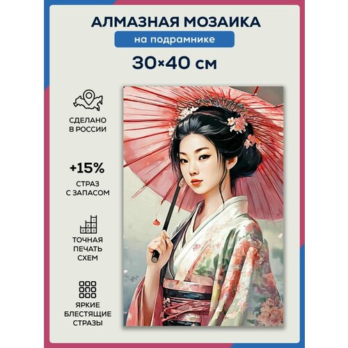 Купить Алмазная мозаика 30×40 Гейша с зонтиком на подрамнике с доставкой по всей России. Алмазная мозаика 30×40 Гейша с зонтиком на подрамнике: сравнение цен, характеристики, фото, актуальное наличие и цены.