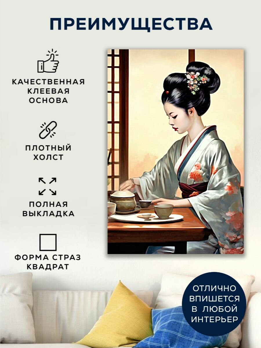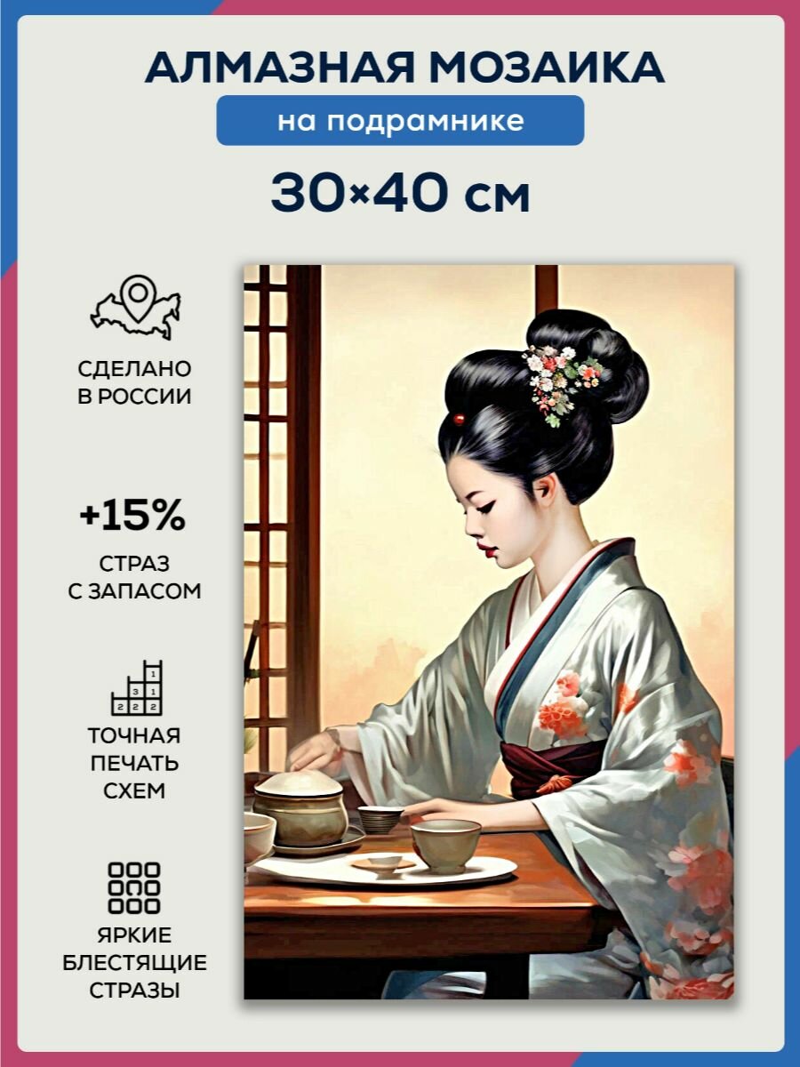 Купить Алмазная мозаика 30×40 Гейша за чаем на подрамнике с доставкой по всей России. Алмазная мозаика 30×40 Гейша за чаем на подрамнике: сравнение цен, характеристики, фото, актуальное наличие и цены.