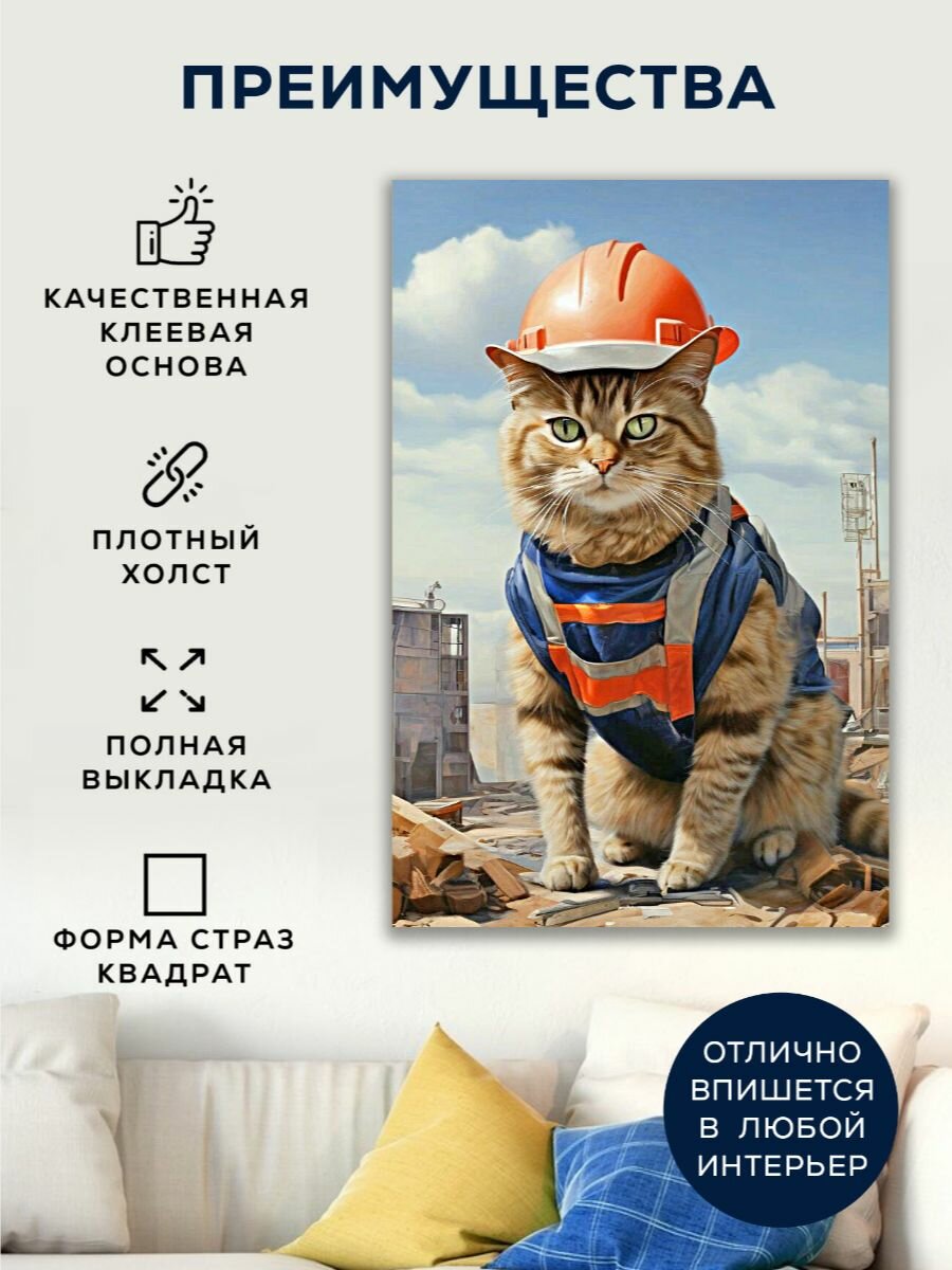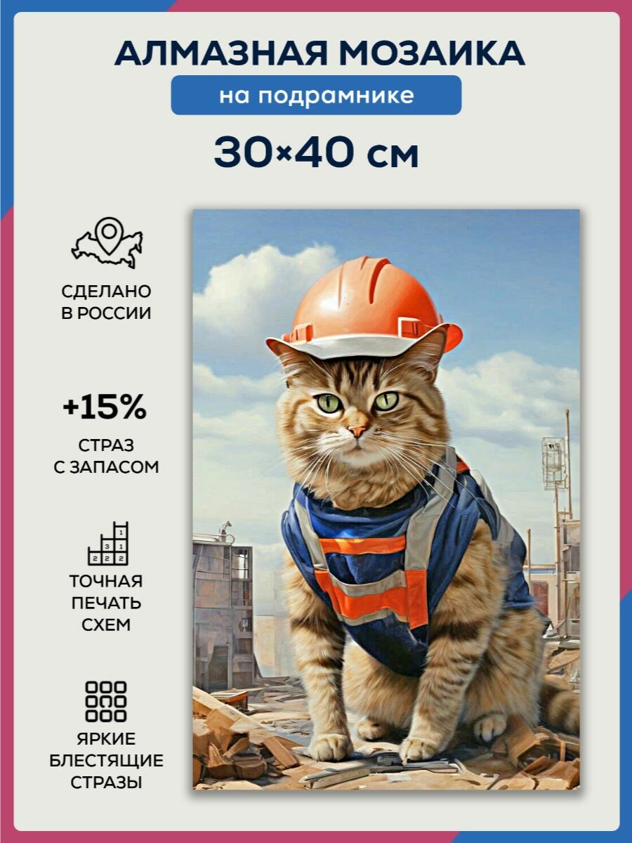 Купить Алмазная мозаика 30×40 Кот — строитель на подрамнике с доставкой по всей России. Алмазная мозаика 30×40 Кот — строитель на подрамнике: сравнение цен, характеристики, фото, актуальное наличие и цены.