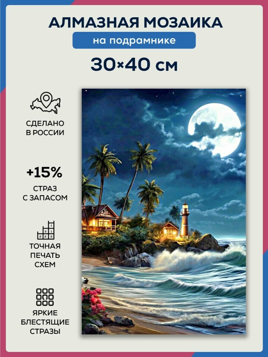 Купить Алмазная мозаика 30×40 Ночное море на подрамнике с доставкой по всей России. Алмазная мозаика 30×40 Ночное море на подрамнике: сравнение цен, характеристики, фото, актуальное наличие и цены.