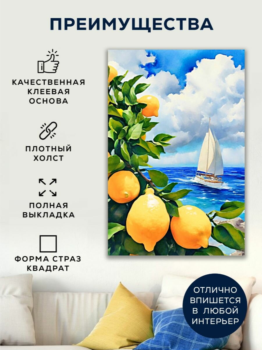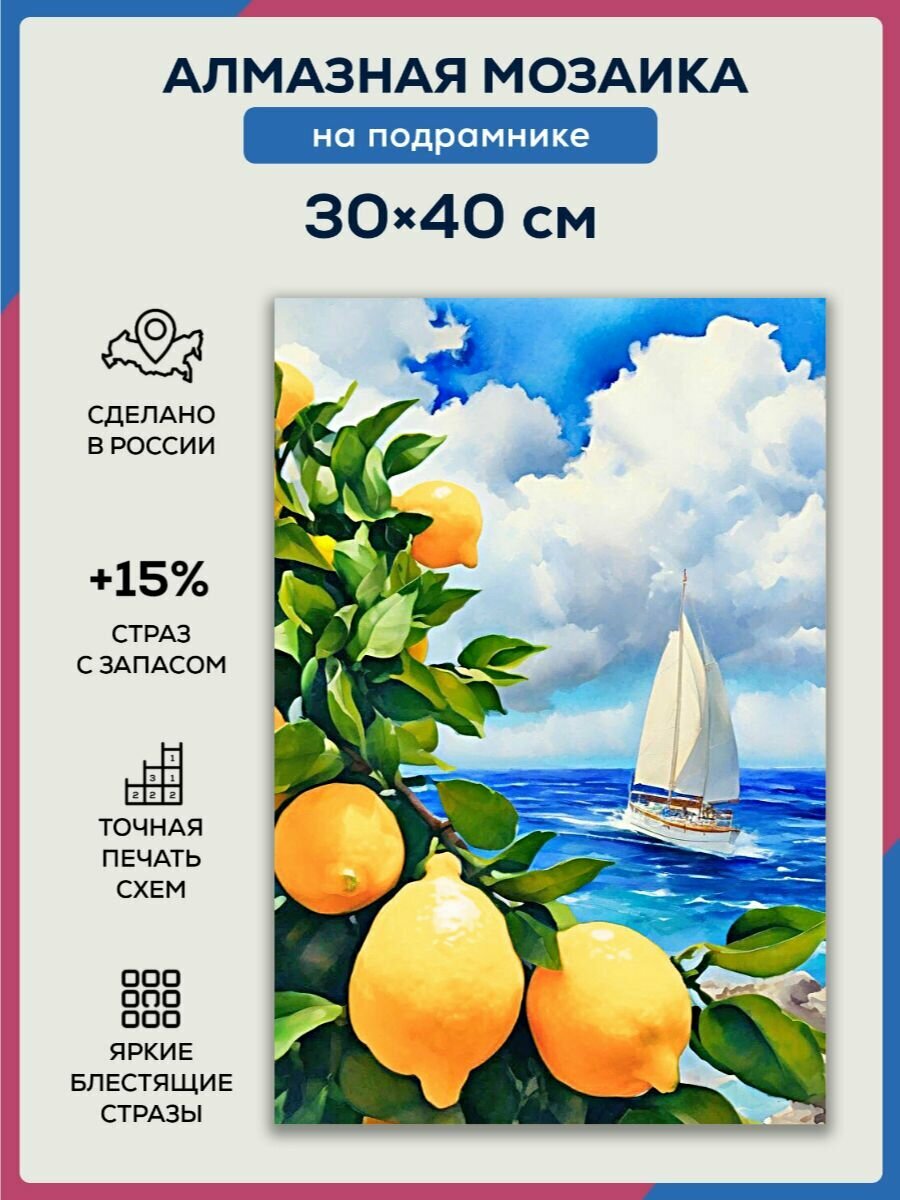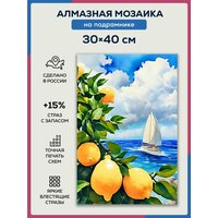 Купить Алмазная мозаика 30×40 Парусник и лимоны на подрамнике с доставкой по всей России.